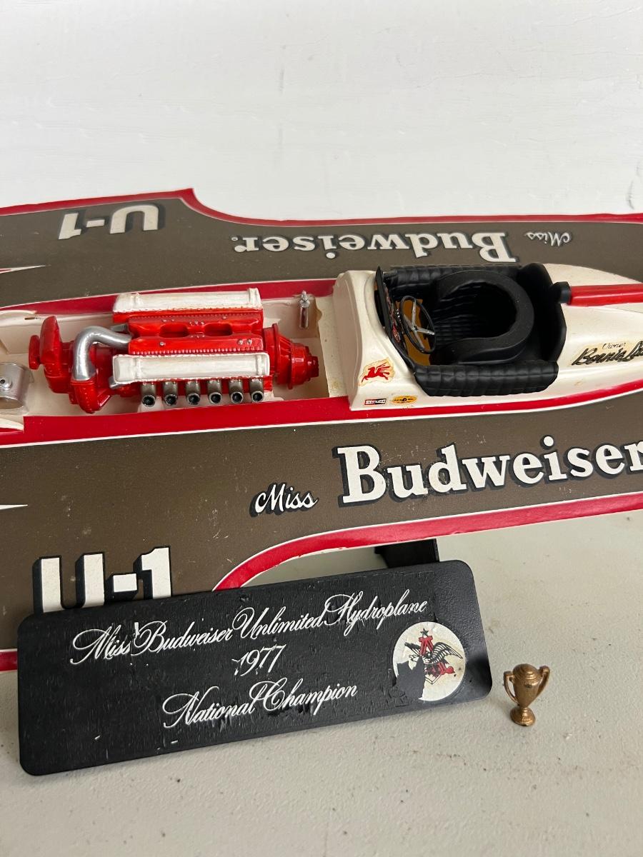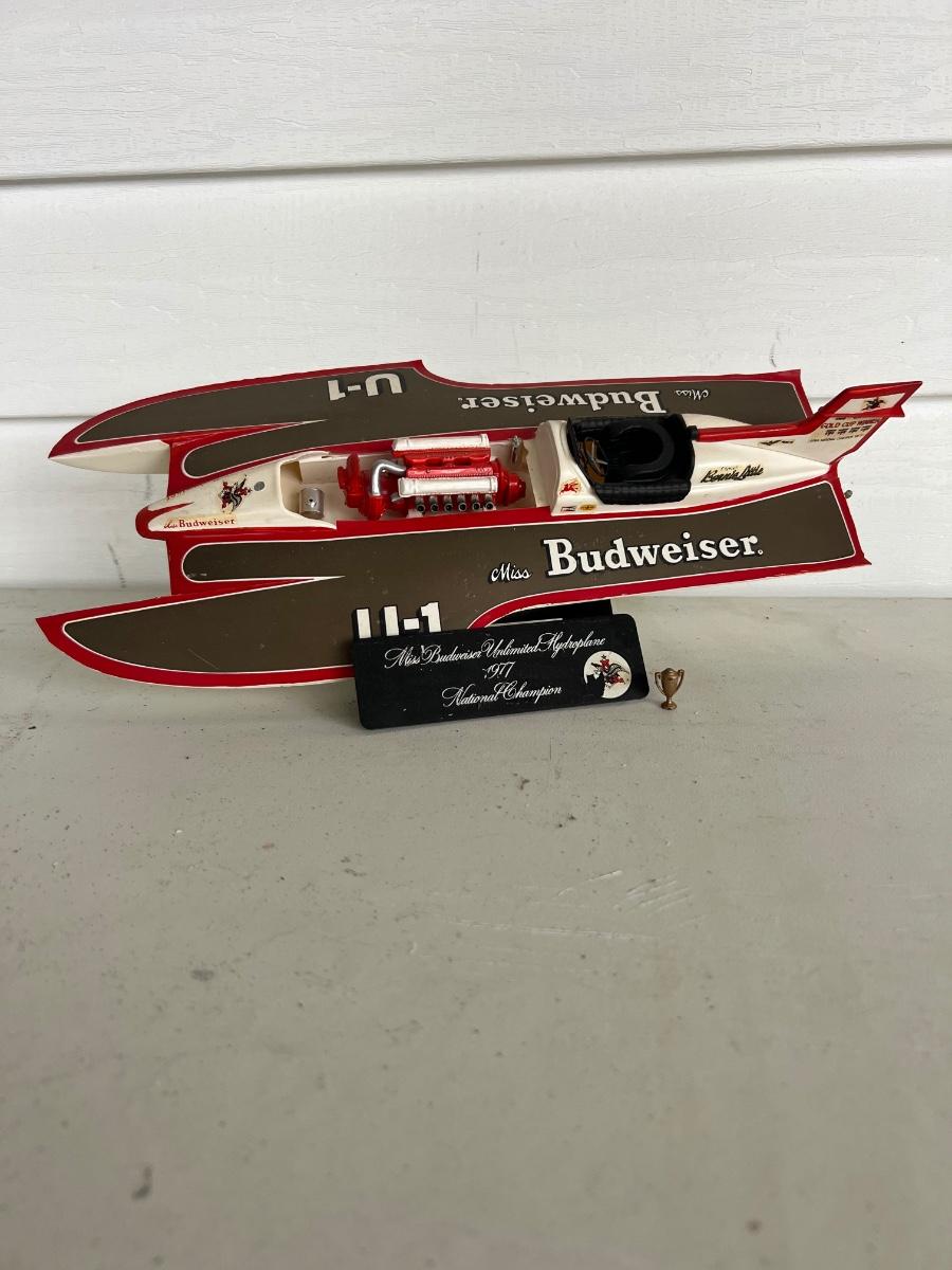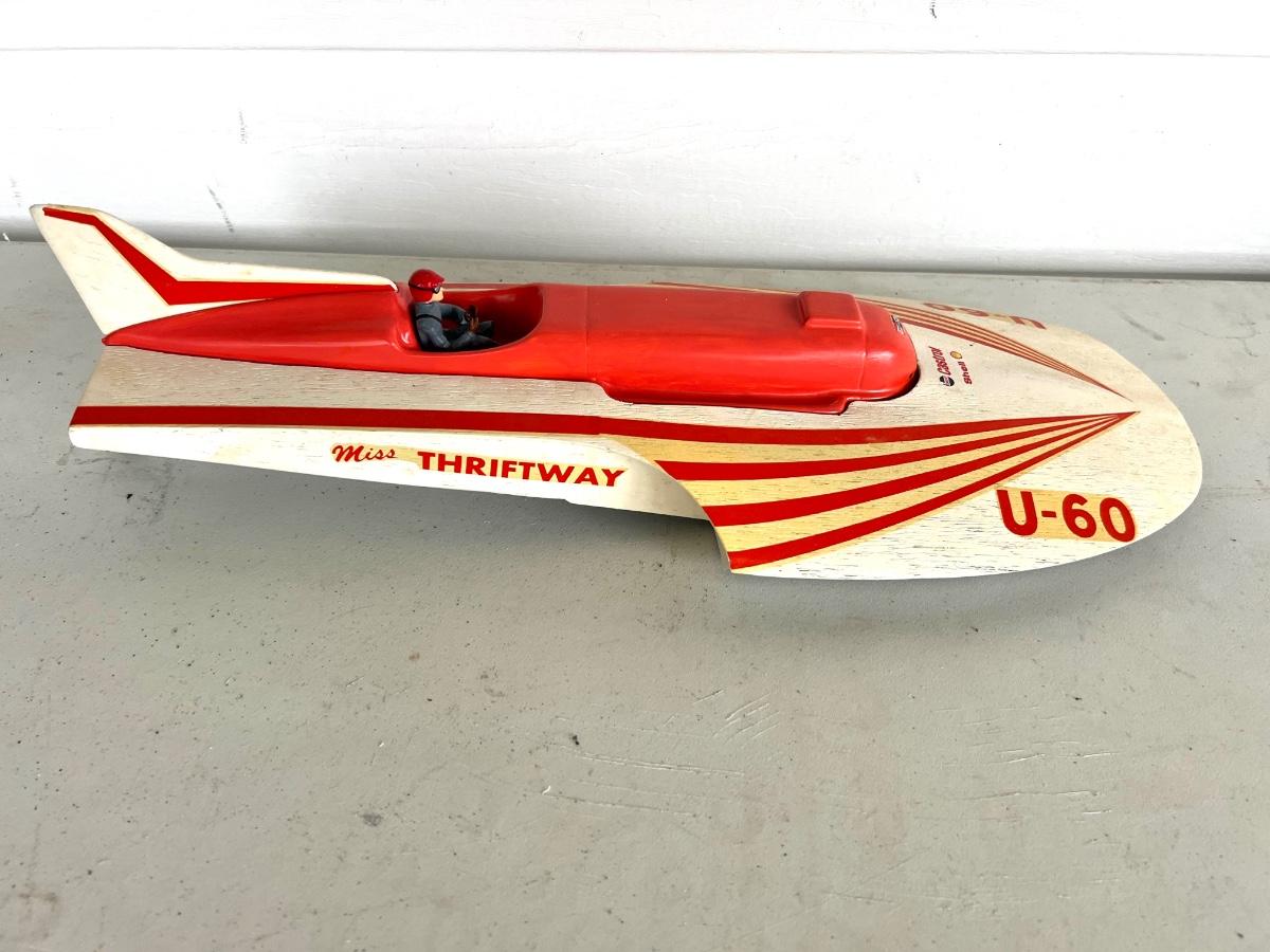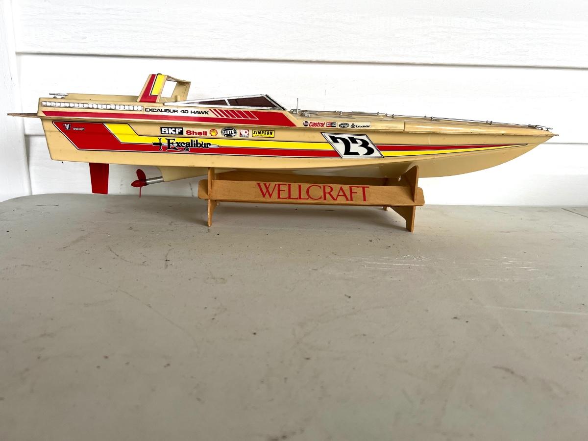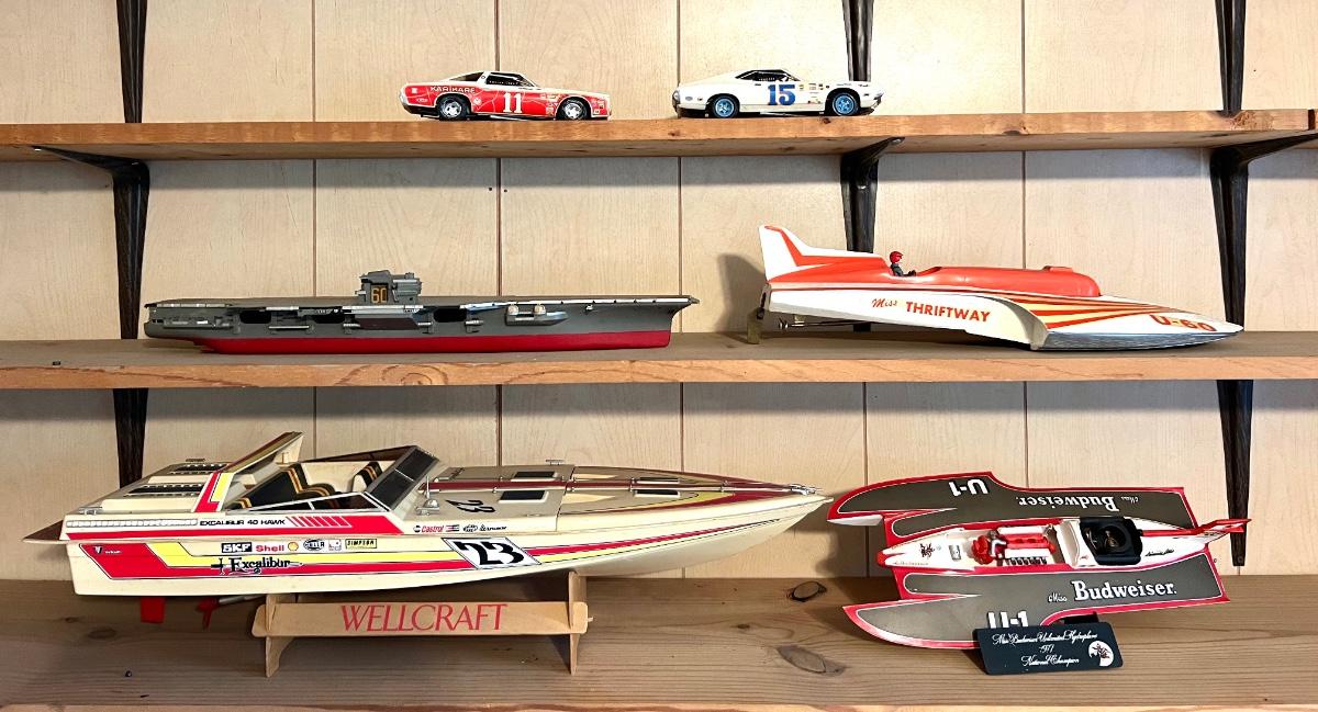 6 Piece Model Lot. Wellcraft Excalibur model measures 28 1/2 inches long and 8 inches wide. Miss Thriftway U60 measures 18 inches long and 8 inches wide. Budweiser U-1 Measures 14 inches long and 7 inches wide. Ship measures 20 1/2 inches long 5 inches wide. Model cars 8 inches long 3 inches wide. All models are in various condition, being sold as decorative items.see pictures.