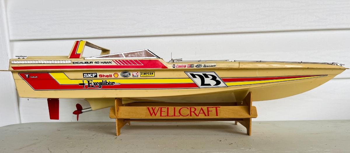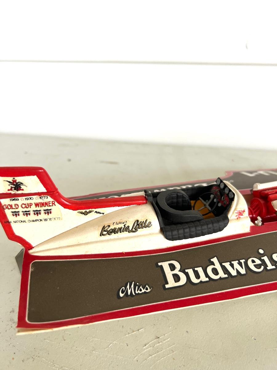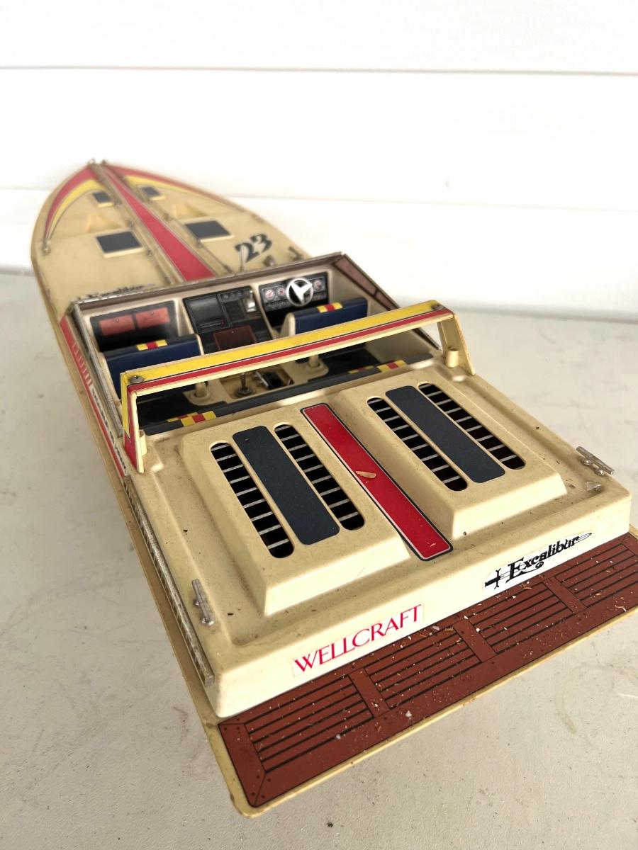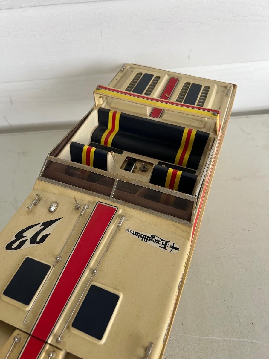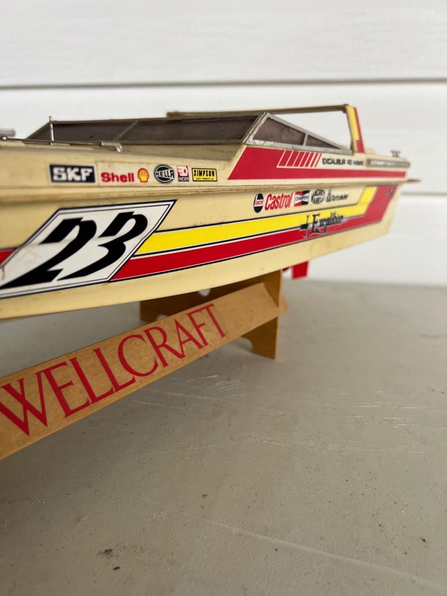 6 Piece Model Lot. Wellcraft Excalibur model measures 28 1/2 inches long and 8 inches wide. Miss Thriftway U60 measures 18 inches long and 8 inches wide. Budweiser U-1 Measures 14 inches long and 7 inches wide. Ship measures 20 1/2 inches long 5 inches wide. Model cars 8 inches long 3 inches wide. All models are in various condition, being sold as decorative items.see pictures.