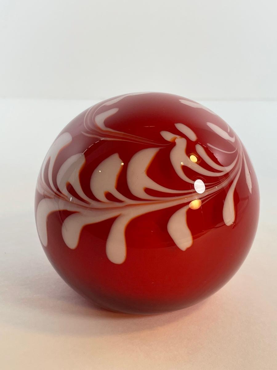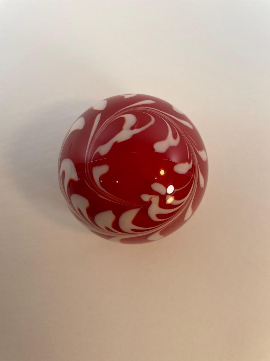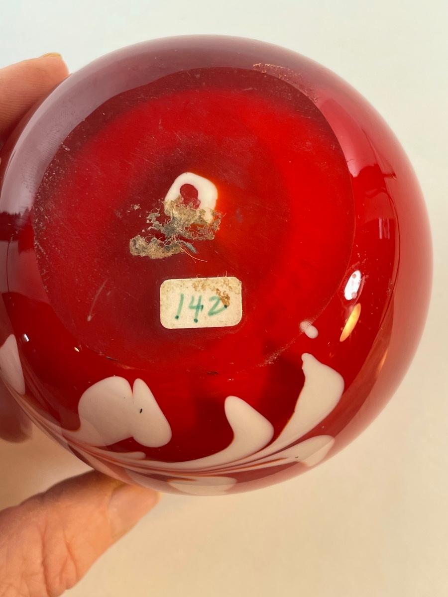 Chinese swirl pattern in red and white from 1985, 3" tall.