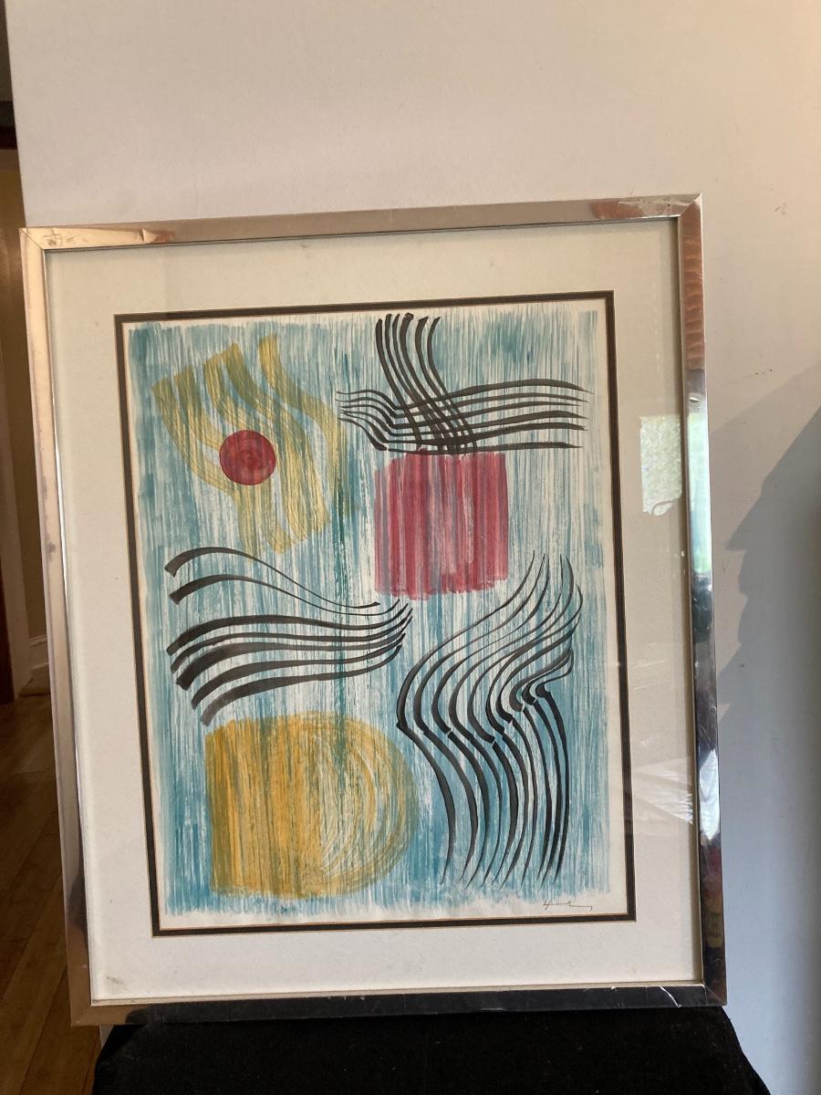 Modern Abstract Lithograph Hand Signed by Artist 25” x 30”
