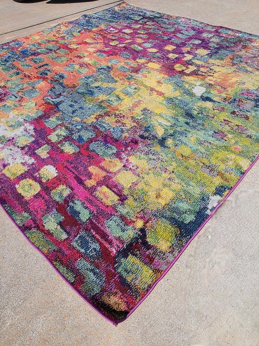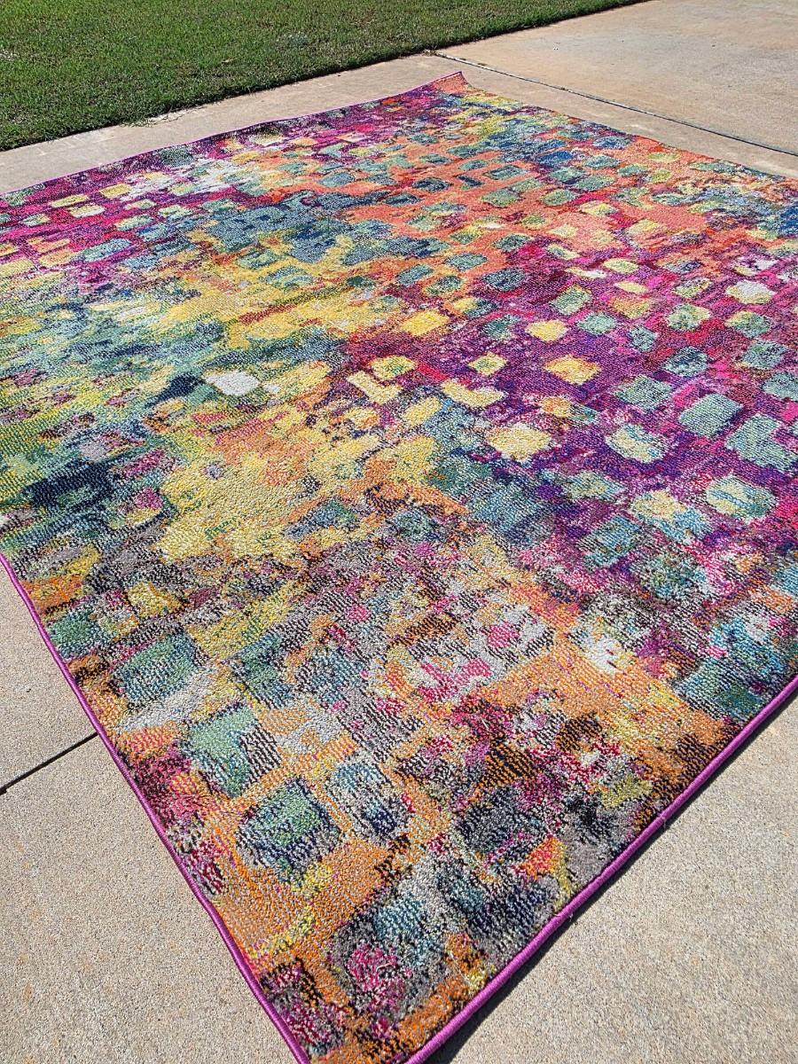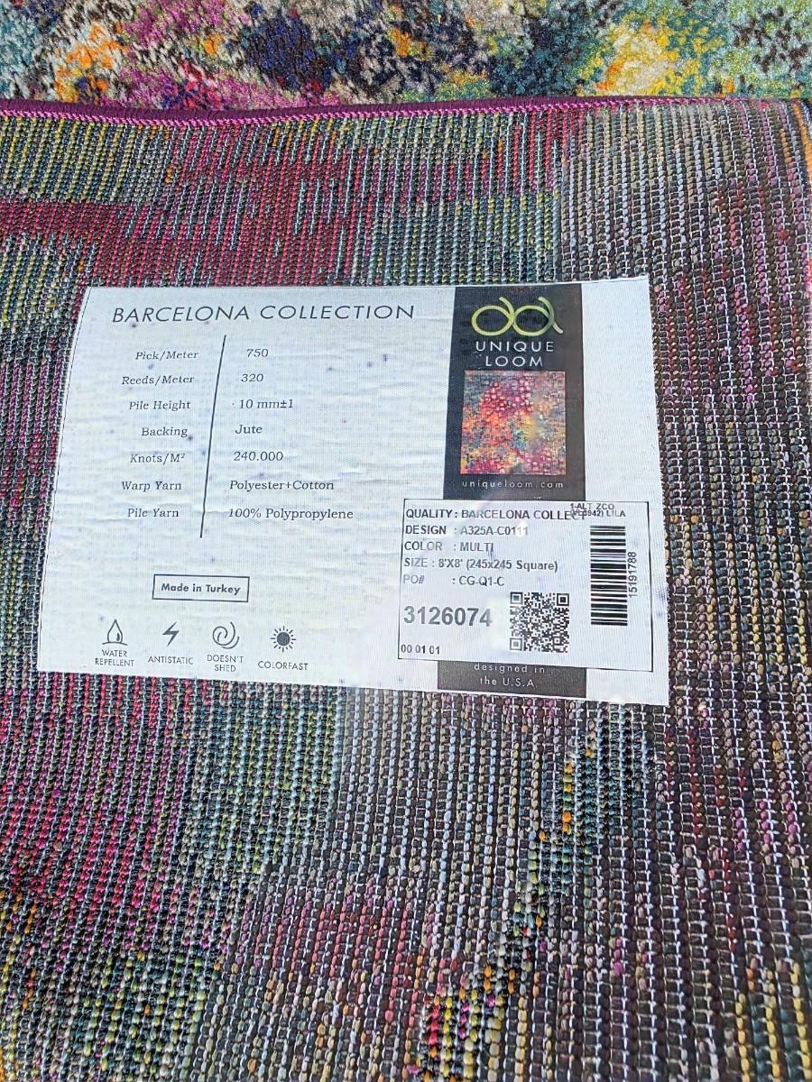 Multi-color Modern Abstract Rug by Unique Loom, Barcelona Collection. Dimensions: 8"x 8" Approximately 2 years old with minimum use. Like new condition in a clean, climate controlled, smoke free, pet free environment.