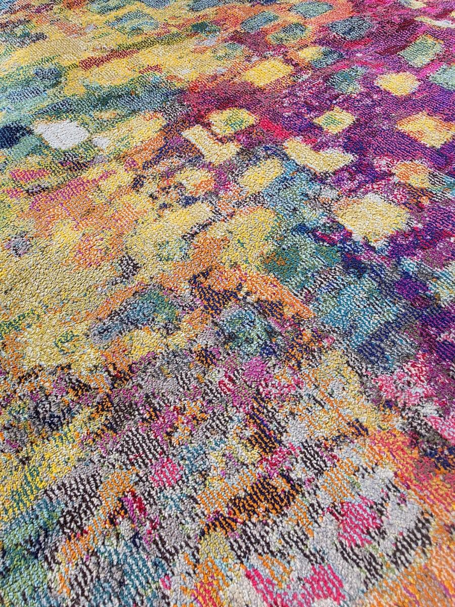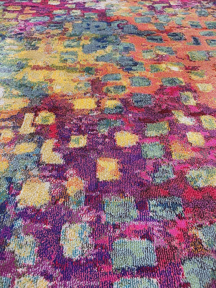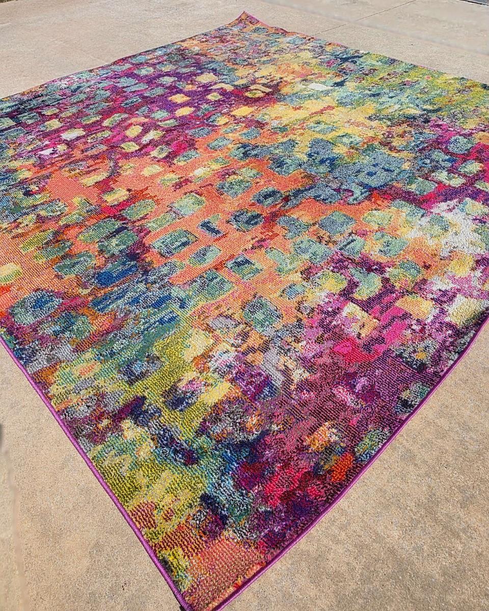 Multi-color Modern Abstract Rug by Unique Loom, Barcelona Collection. Dimensions: 8"x 8" Approximately 2 years old with minimum use. Like new condition in a clean, climate controlled, smoke free, pet free environment.