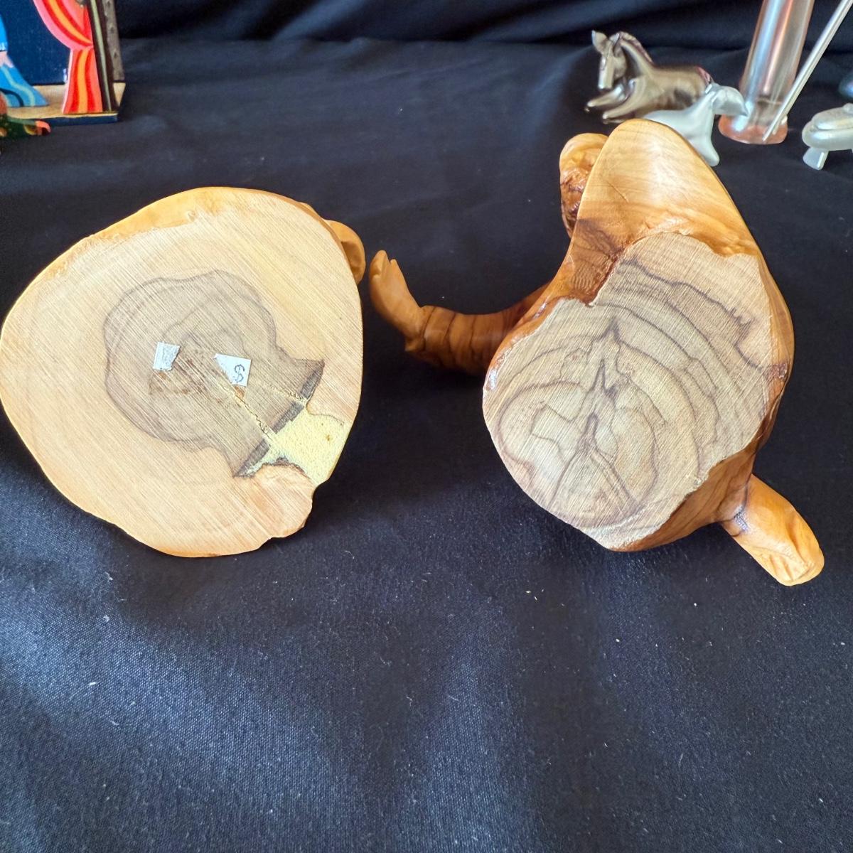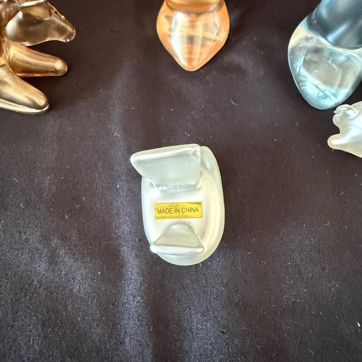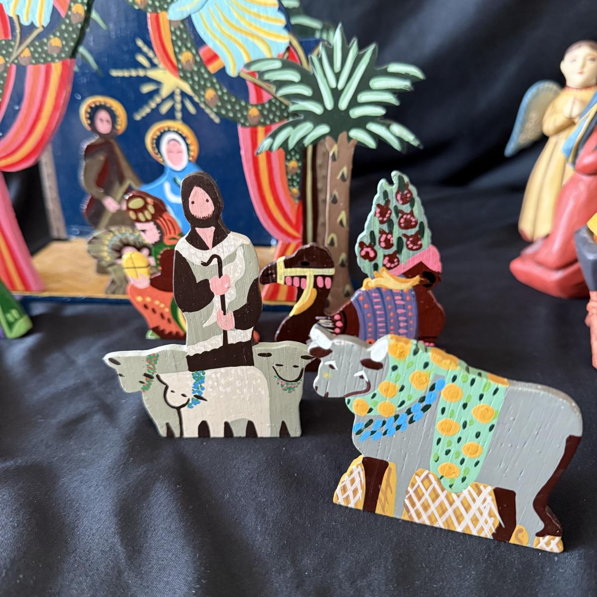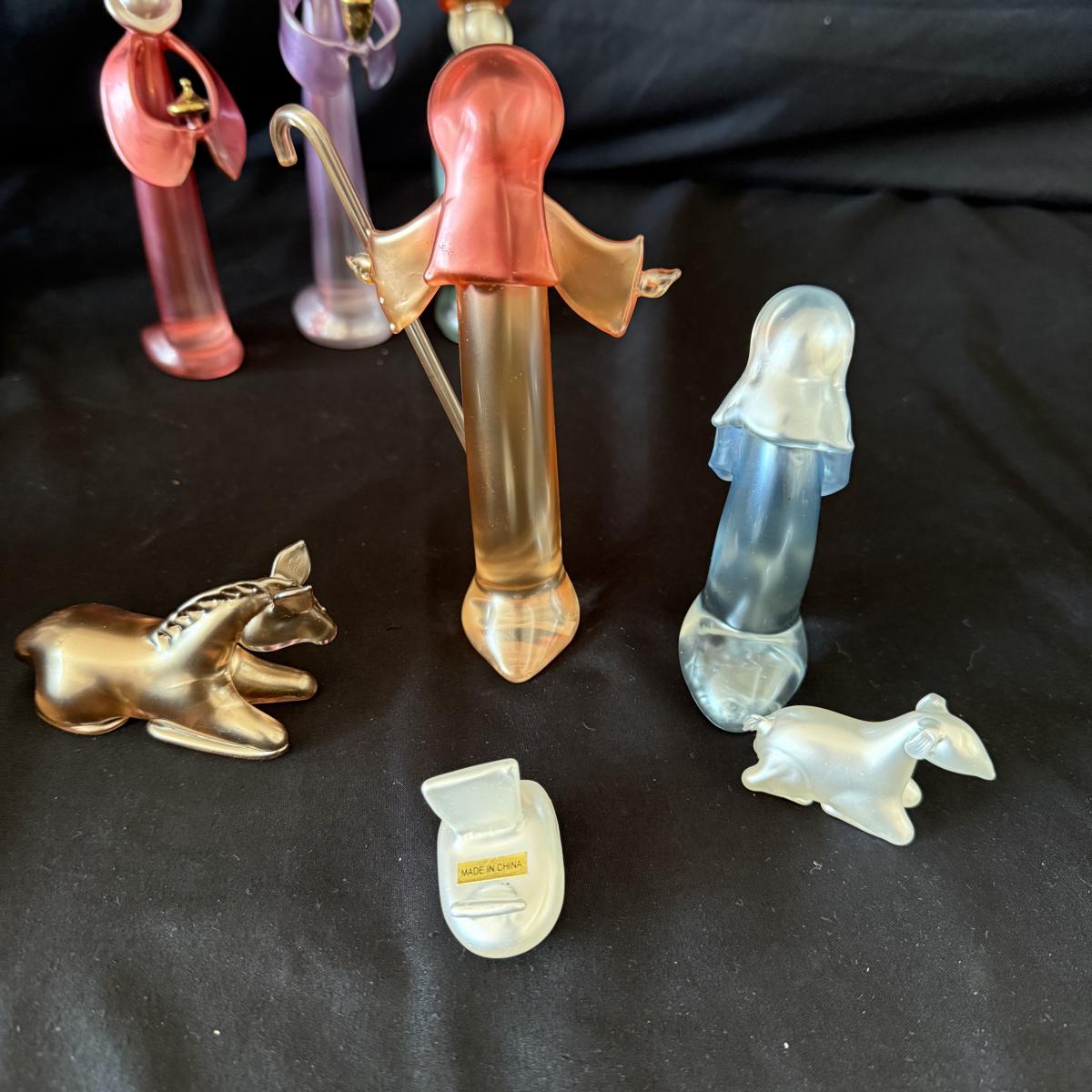 This lot contains a collection of six nativity scenes all made in a variety of styles and materials varying from painted wood, to glass, to clay, to plastic. The largest piece is the manger of the painted wooden set and it measures 7.75” x 3.5” x 9”H. See pictures for details. Shipping available.