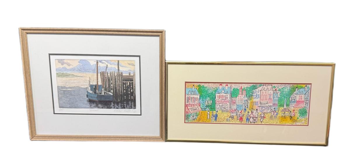 Includes a signed and numbered Charles Gabriel lithograph, and a signed artist proof etching by Carol Collette. Total of two pieces. Measurement of largest: 16”L. [CS]