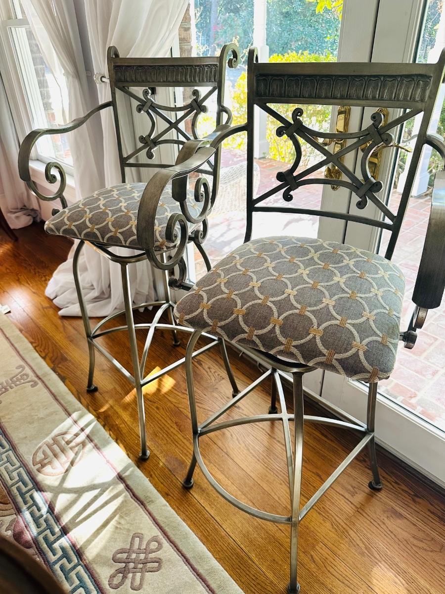 PRETTY IRON BAR STTOLS WITH MODERN GEO FABRIC 17X21X45