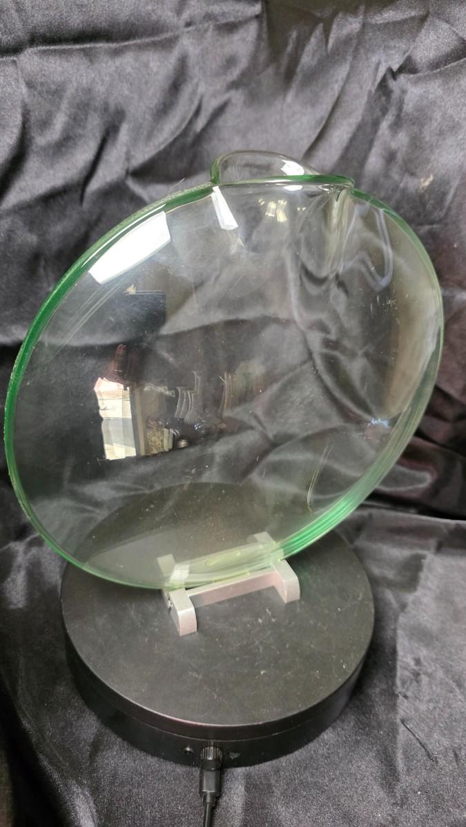 Modern Clear Art Glass Oval Sculpture on Rotating Display Stand – Contemporary Display Piece