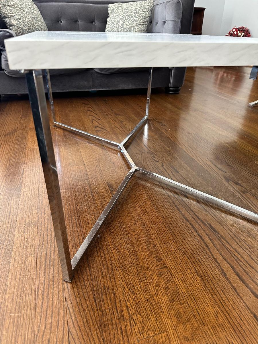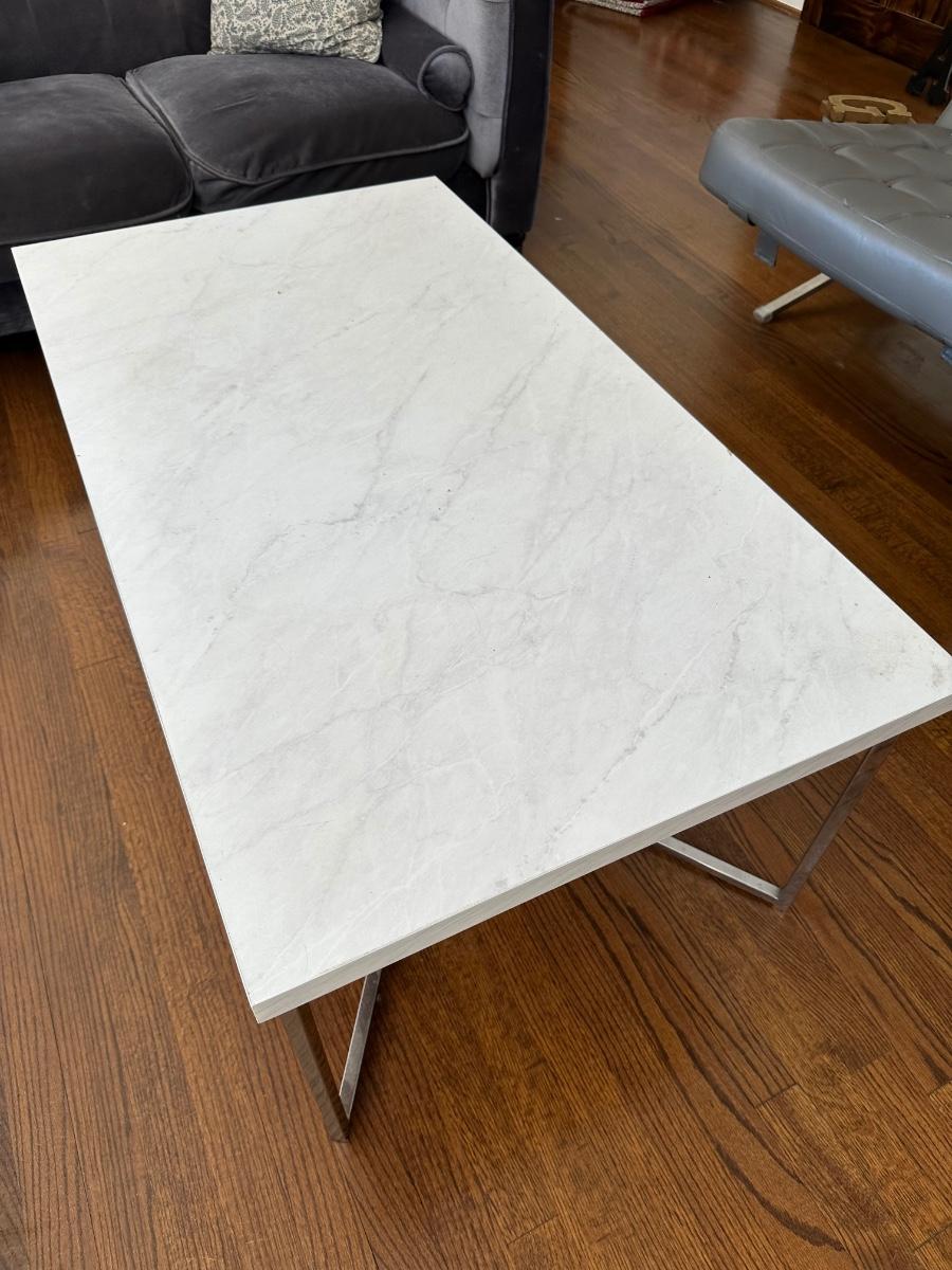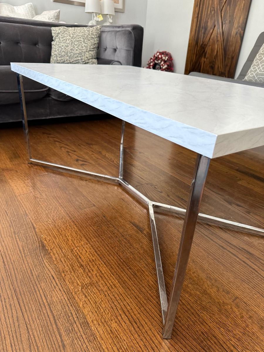 METAL BASE, FAUX MARBLE TOP COFFEE TABLE 42W X 23 1/2D X 18T