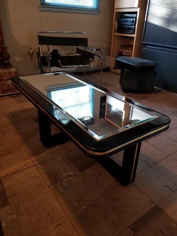 Modern Coffee table with Mirror Top & Modern Metal Chair with Leather Straps
