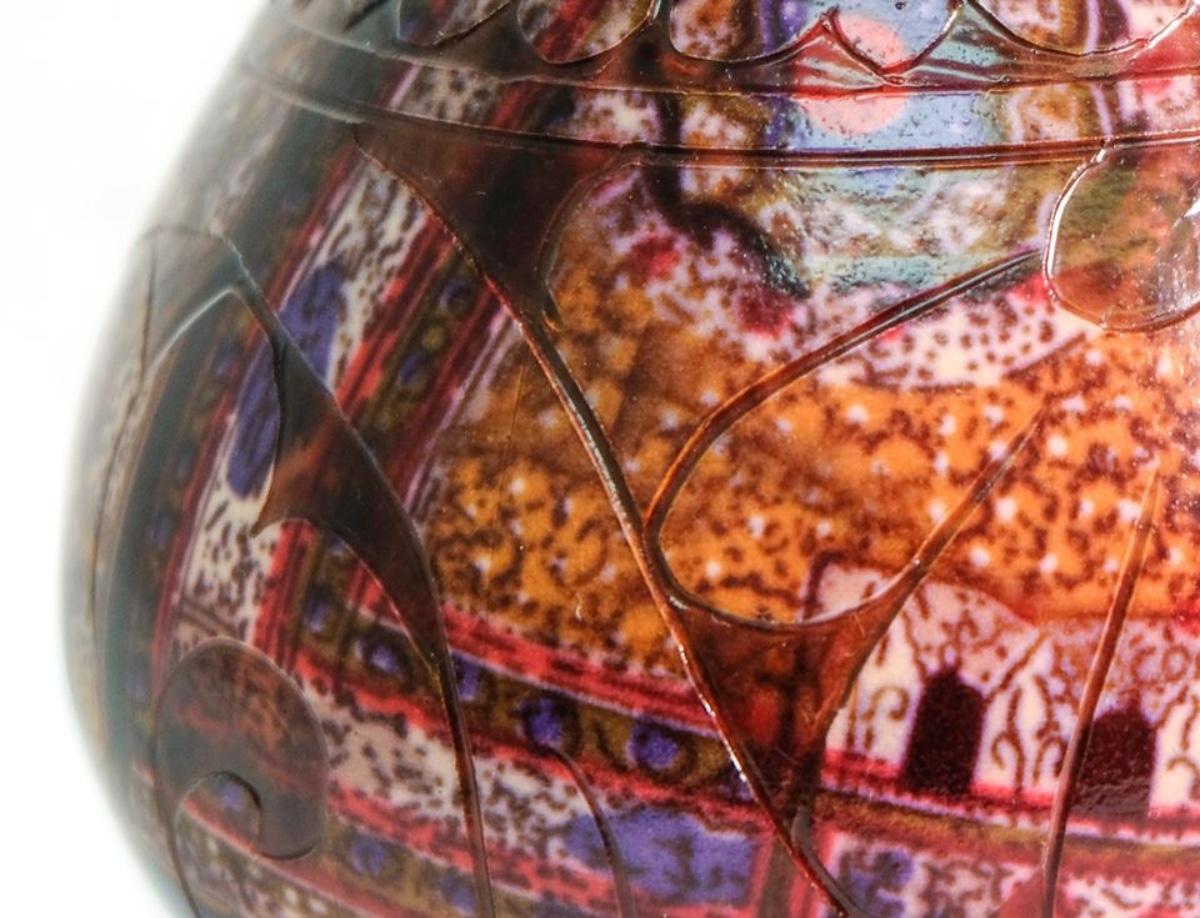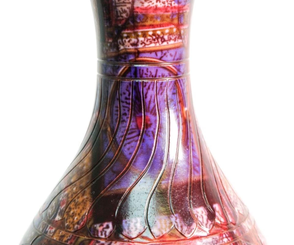Modern Colorful Incised Pottery Vase, Signed