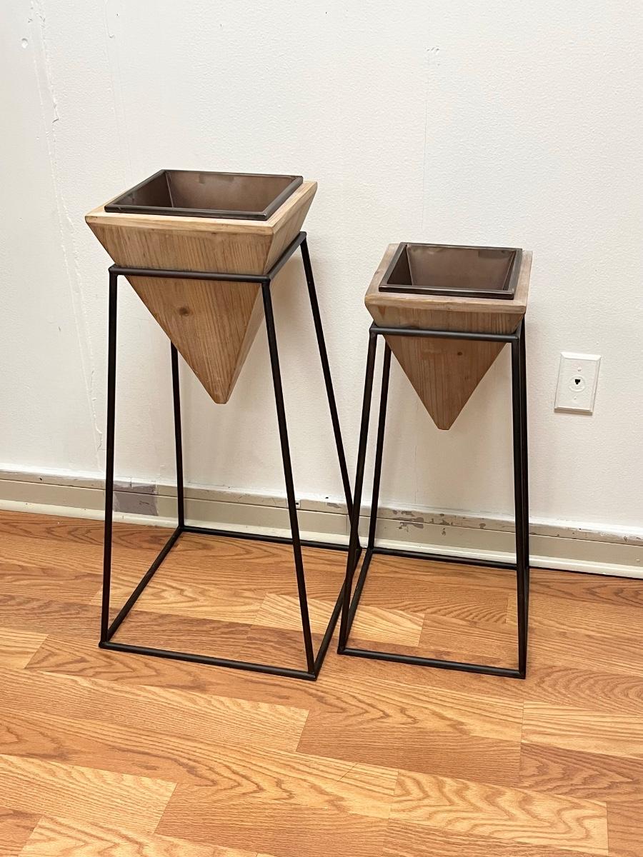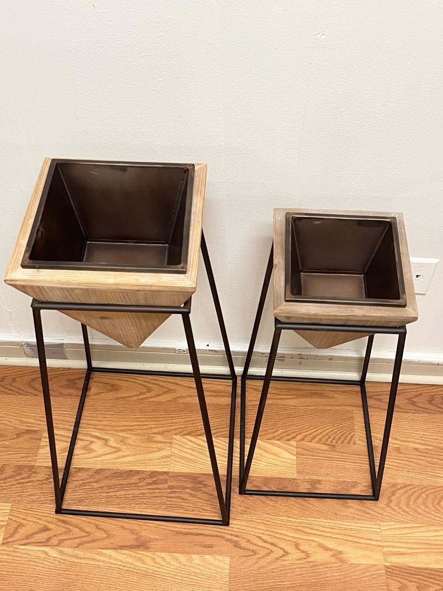 Modern Wood & Copper Planters ~ Set Of Two (2)