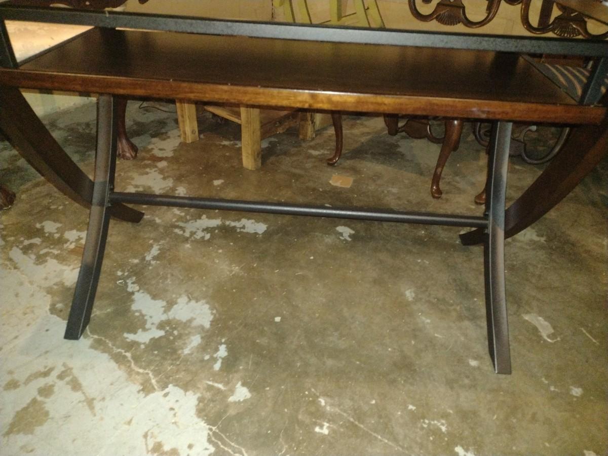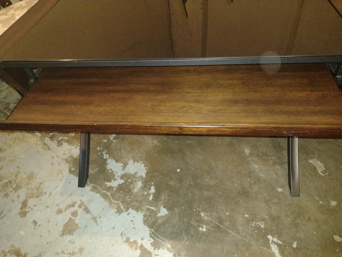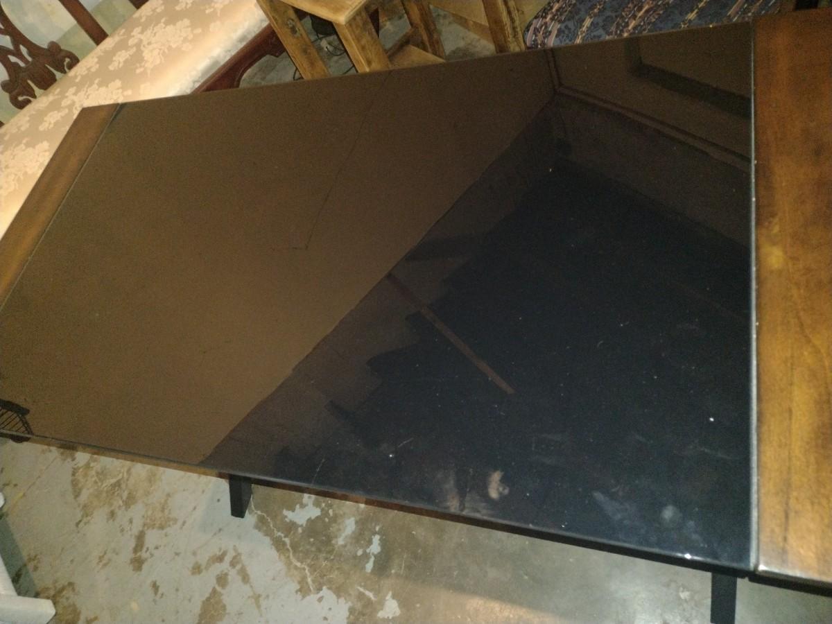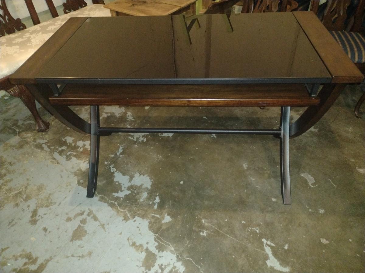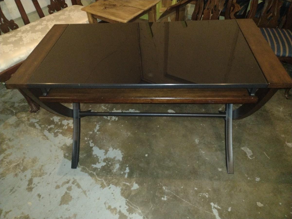 Modern Design Metal Frame with Solid Wood Body Worktable with Dark Glass Surface
