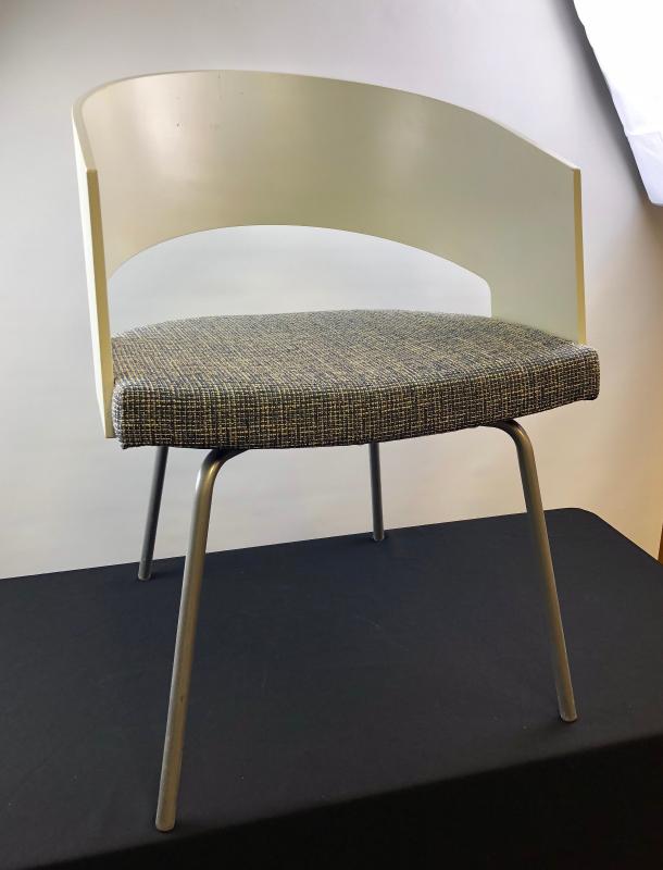 From Source International here is a bent plywood chair with fabric seat...Clean modern lines..