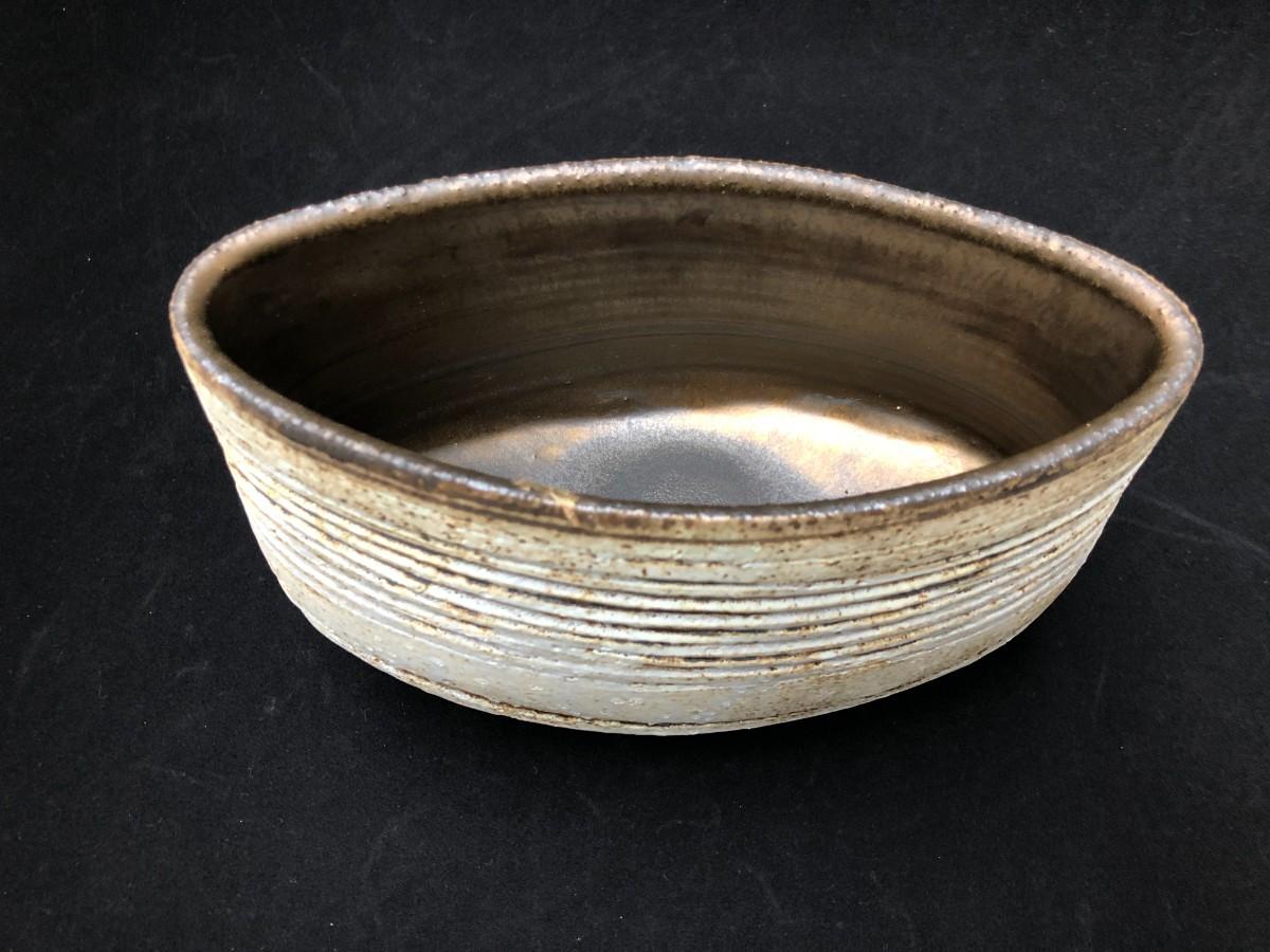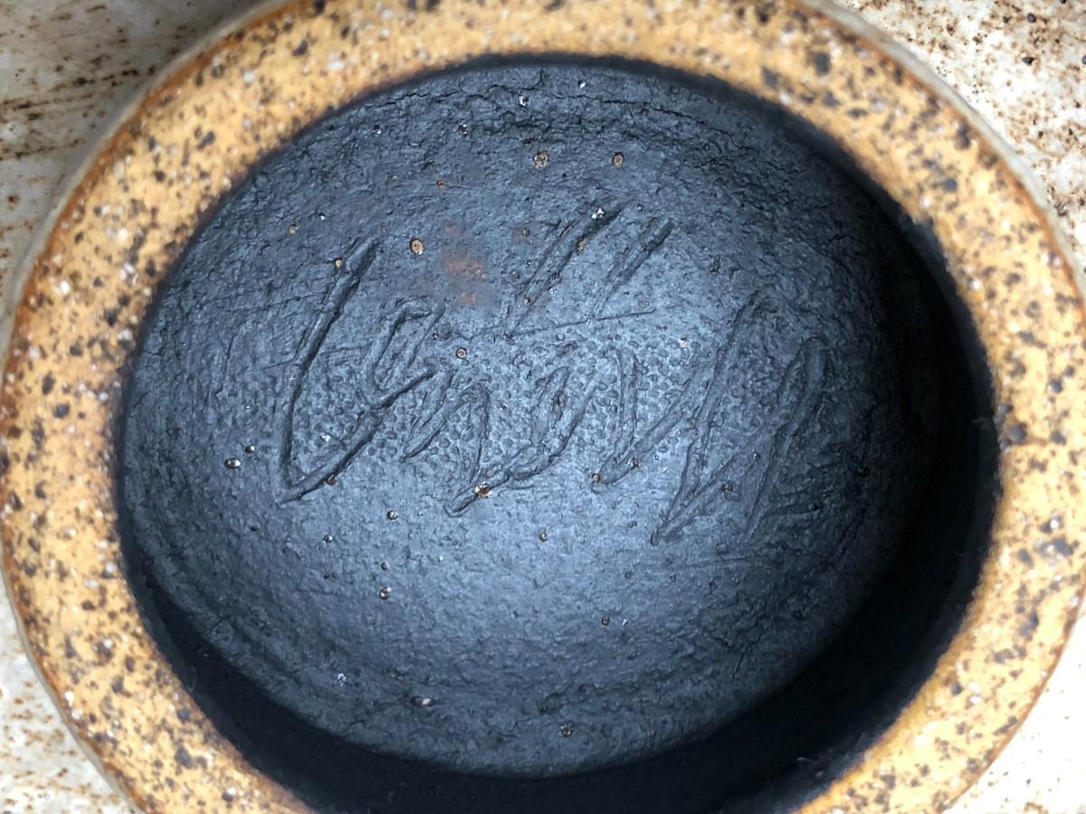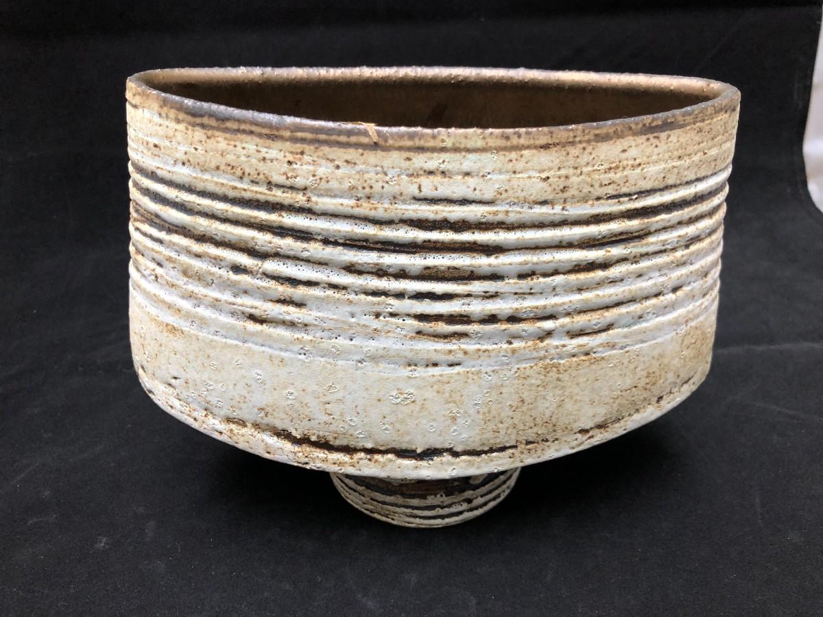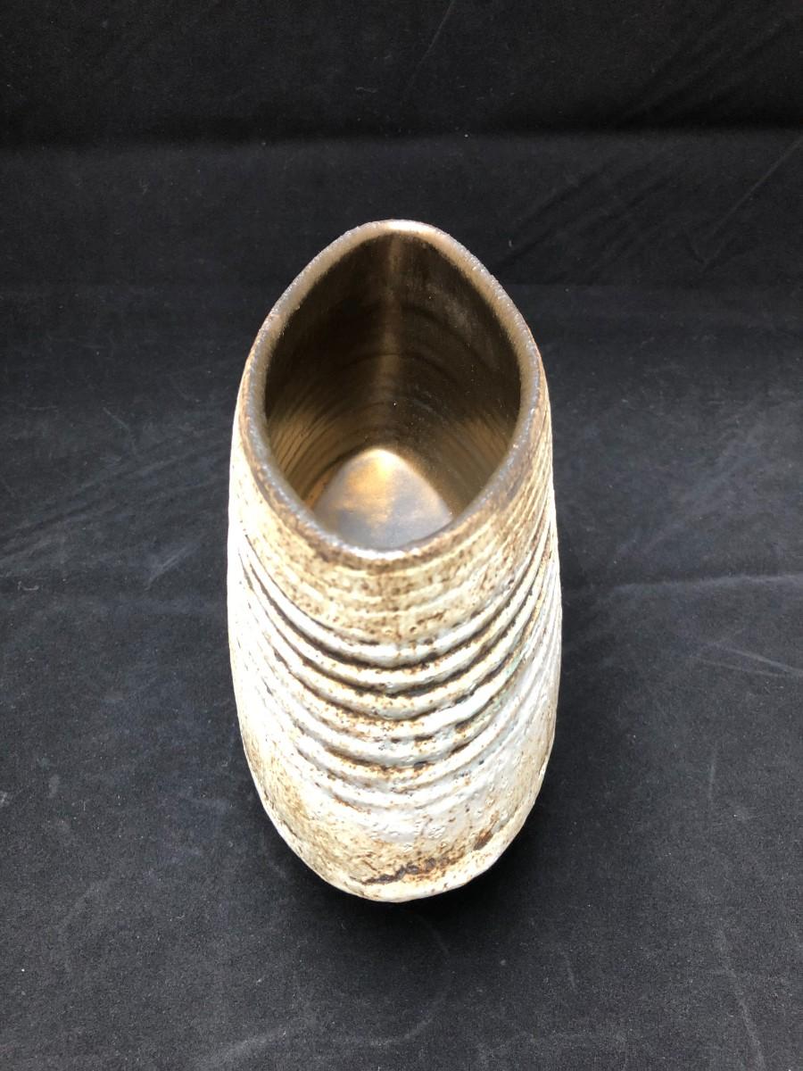 Modern design veramic vessel signed by artist. Brown clay with a white or light grey glaze. In very good condition.