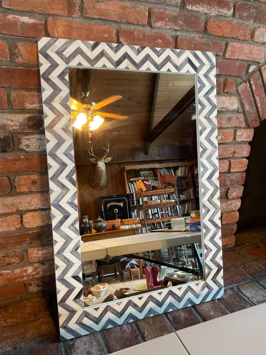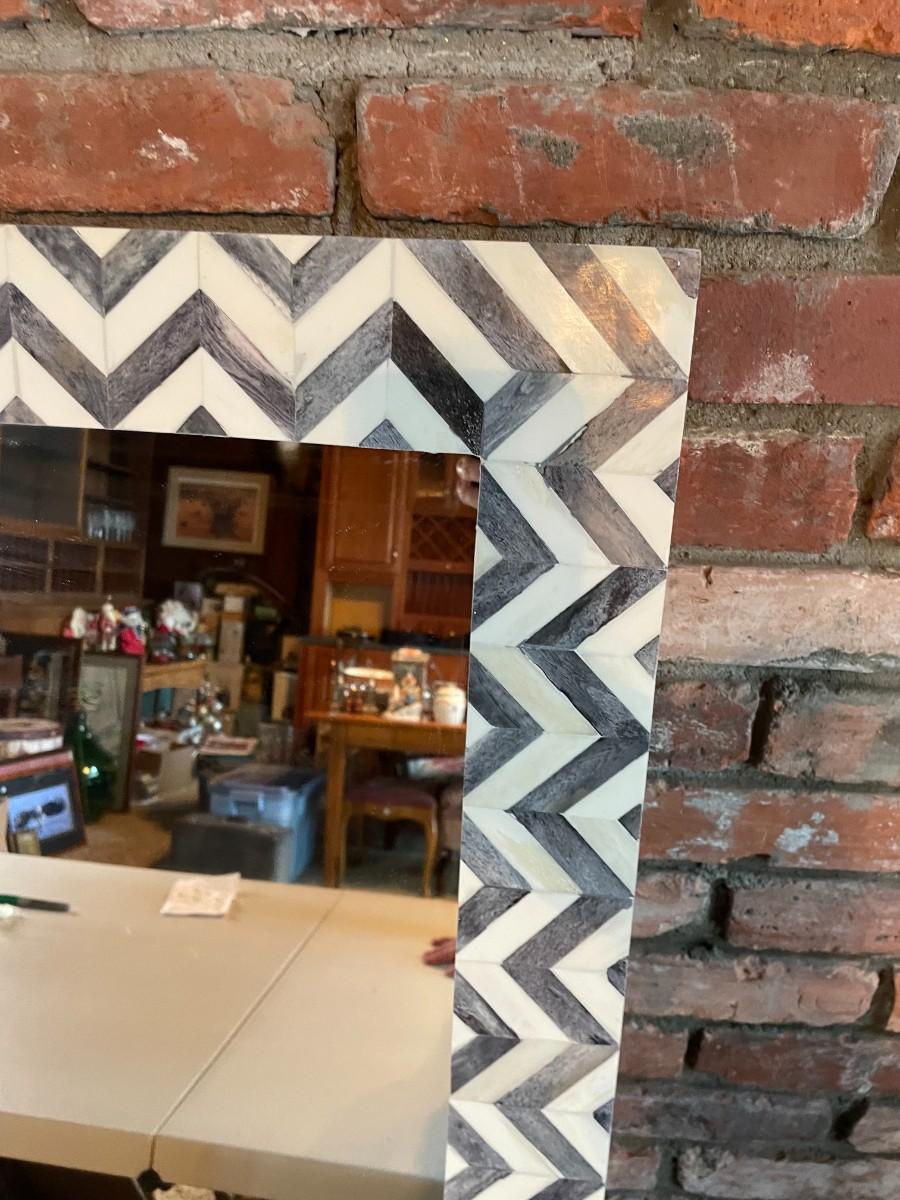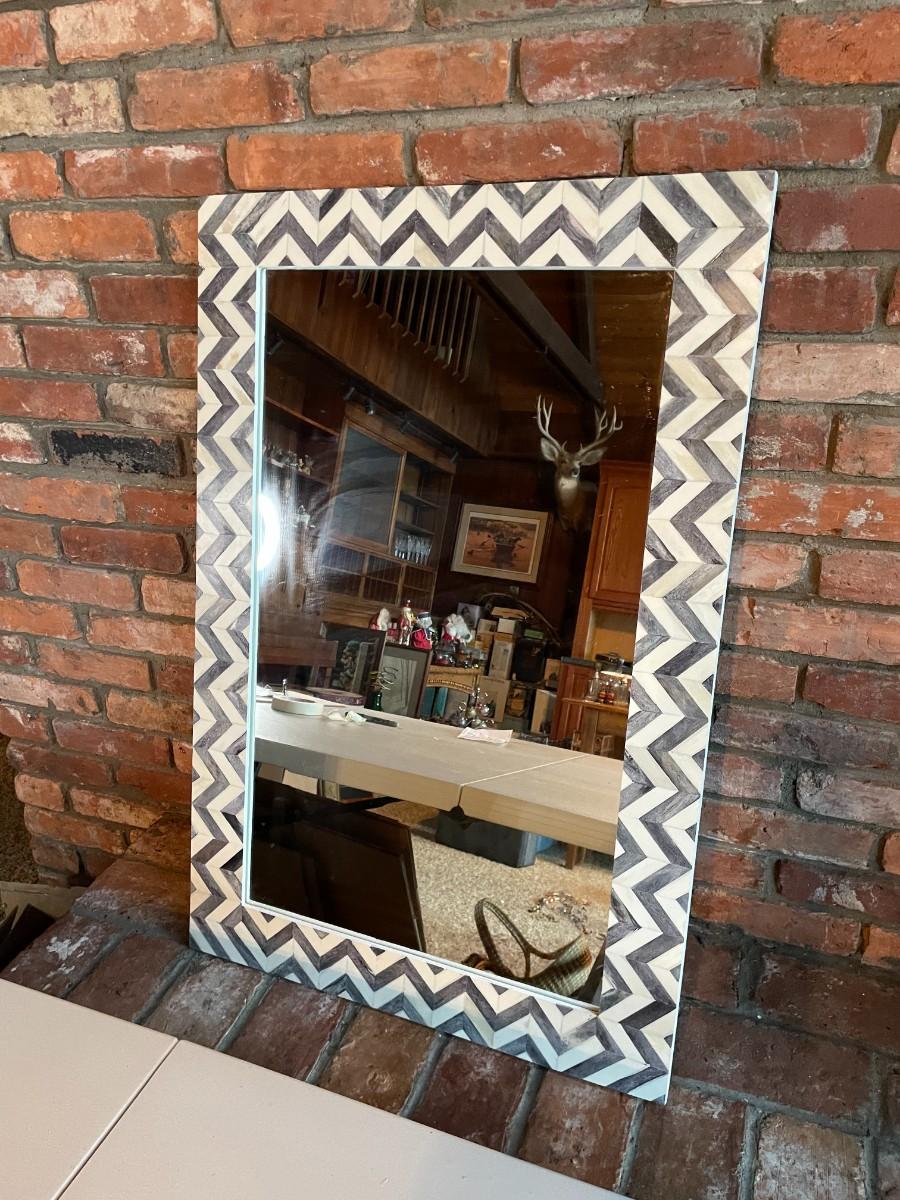 Modern Gray and White Zig Zag Pattern Decorative Wall Mirror