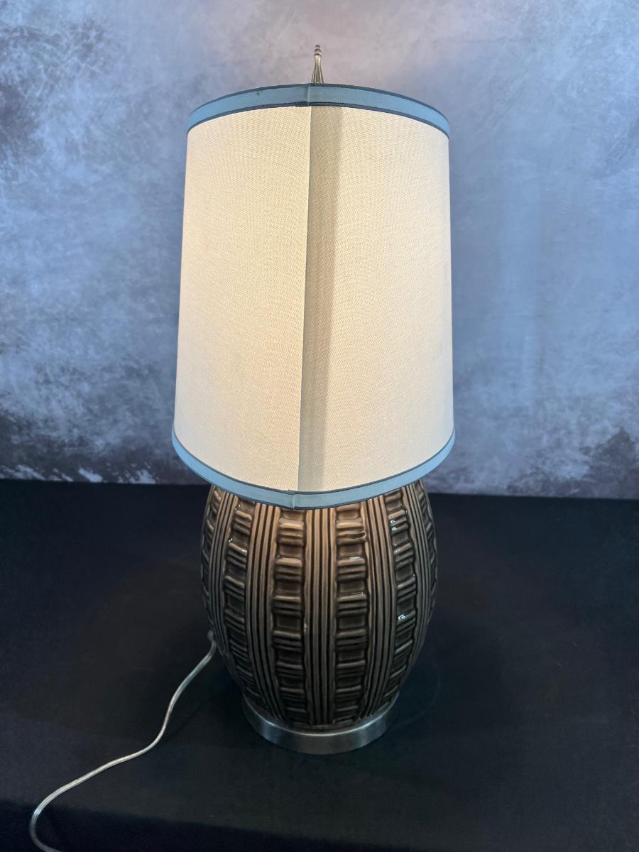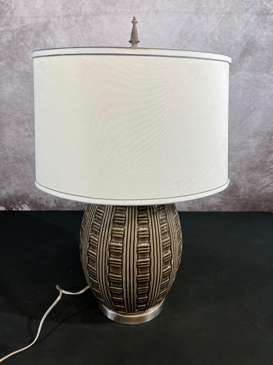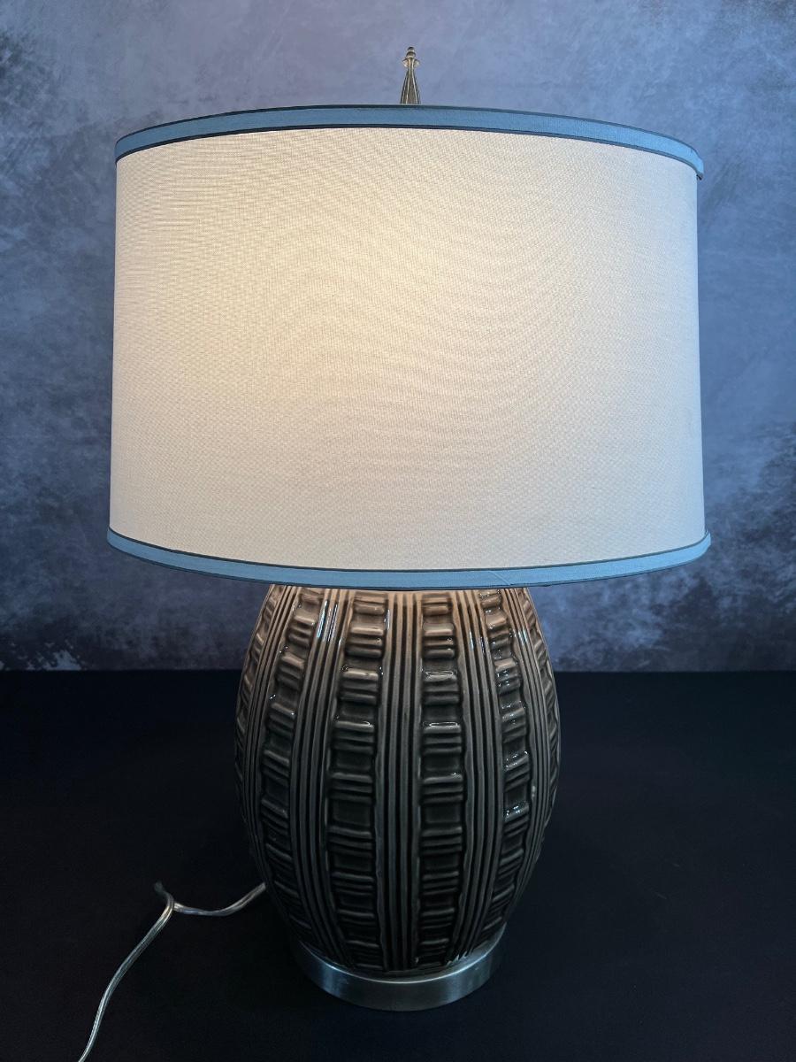 Modern Grey Ceramic Lamp 26"H W/18" Shade