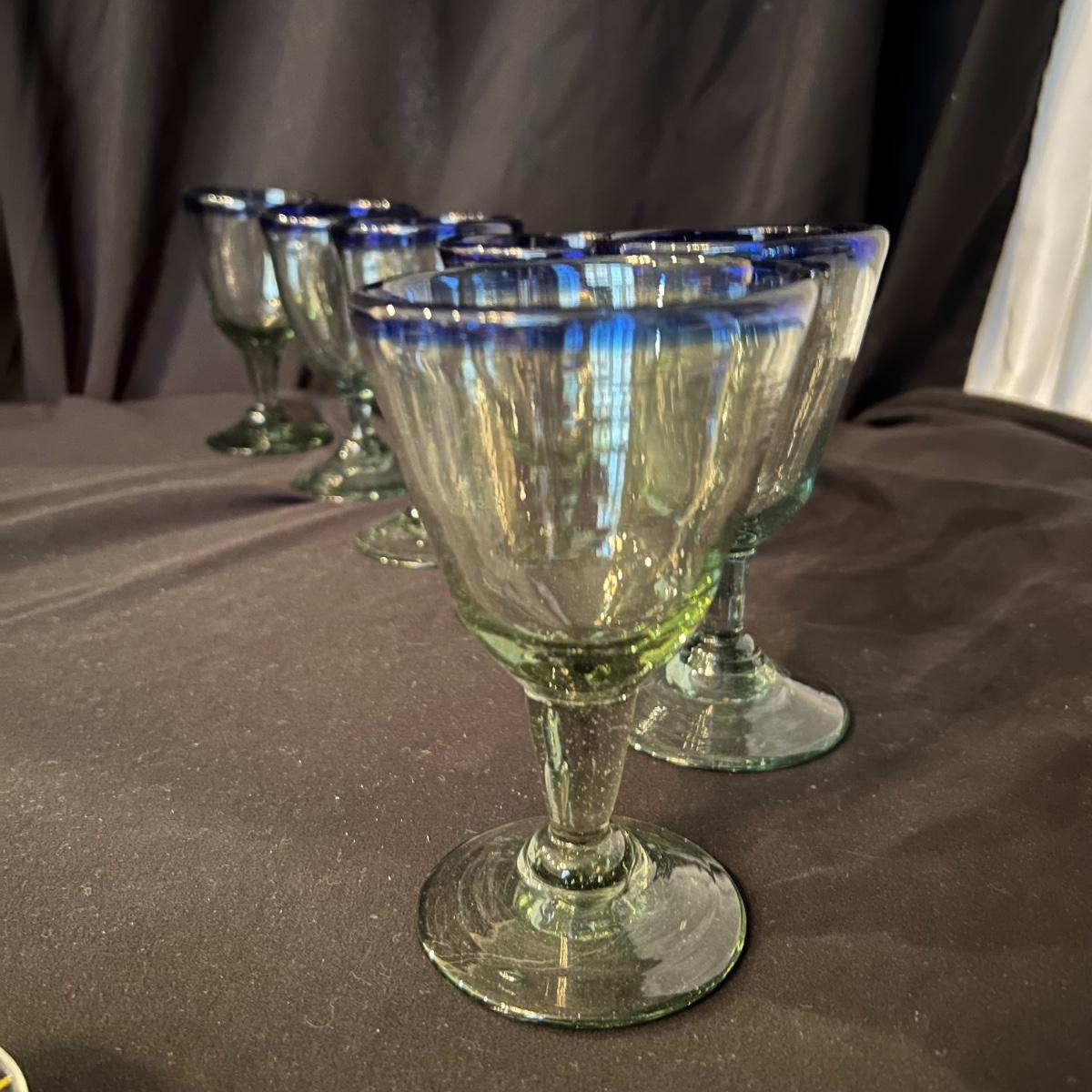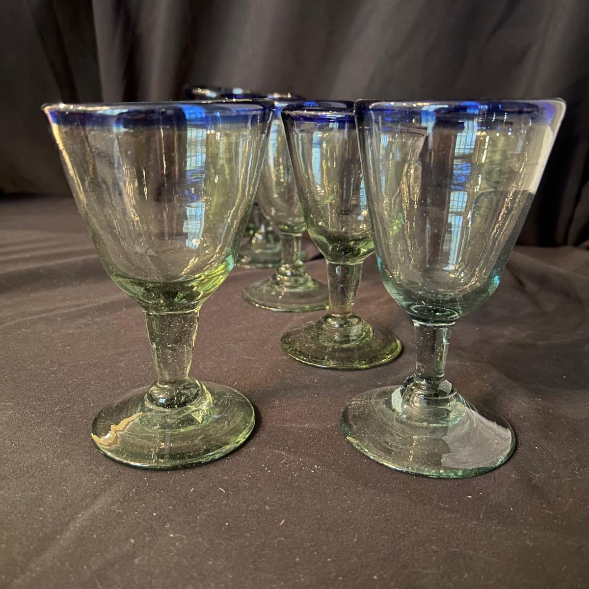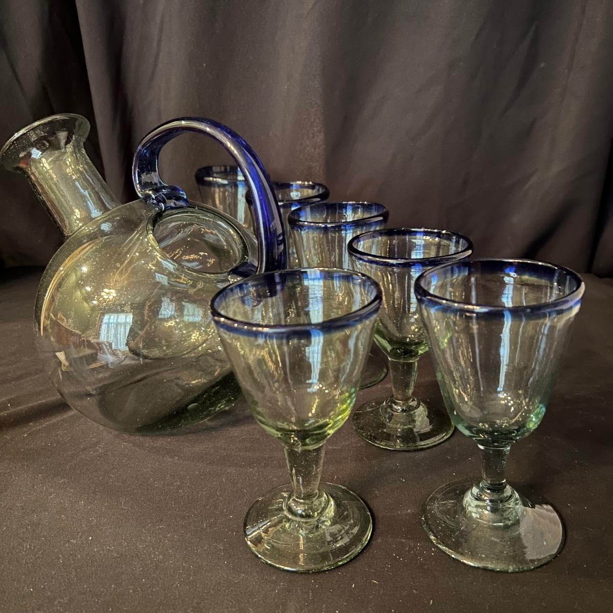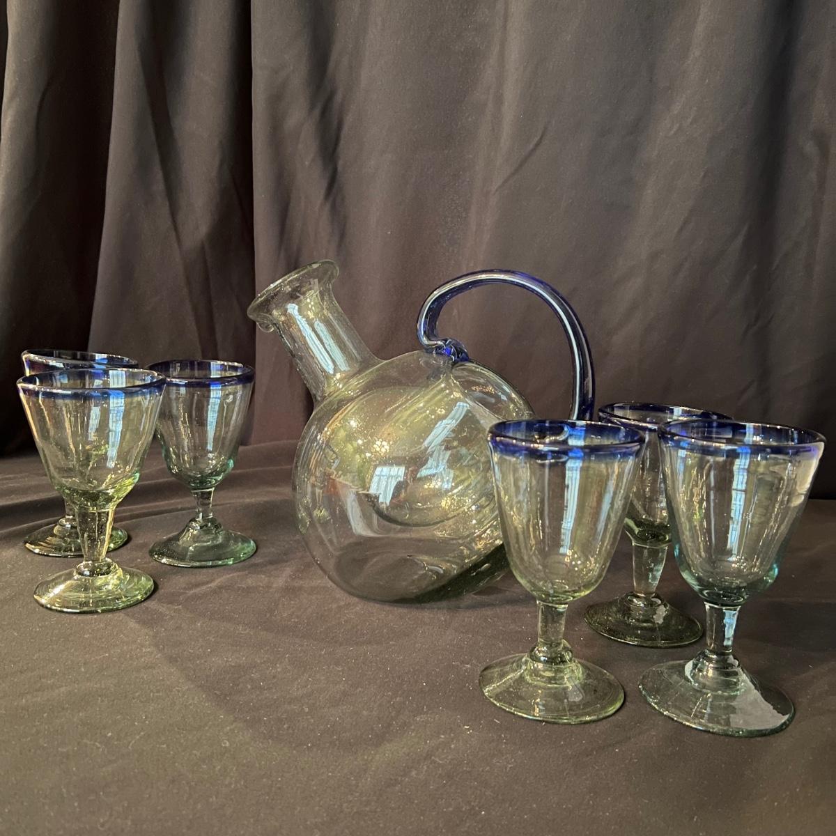 Modern Hand blown Glass Pitcher & Matching Stemmed Glasses (K-RG)