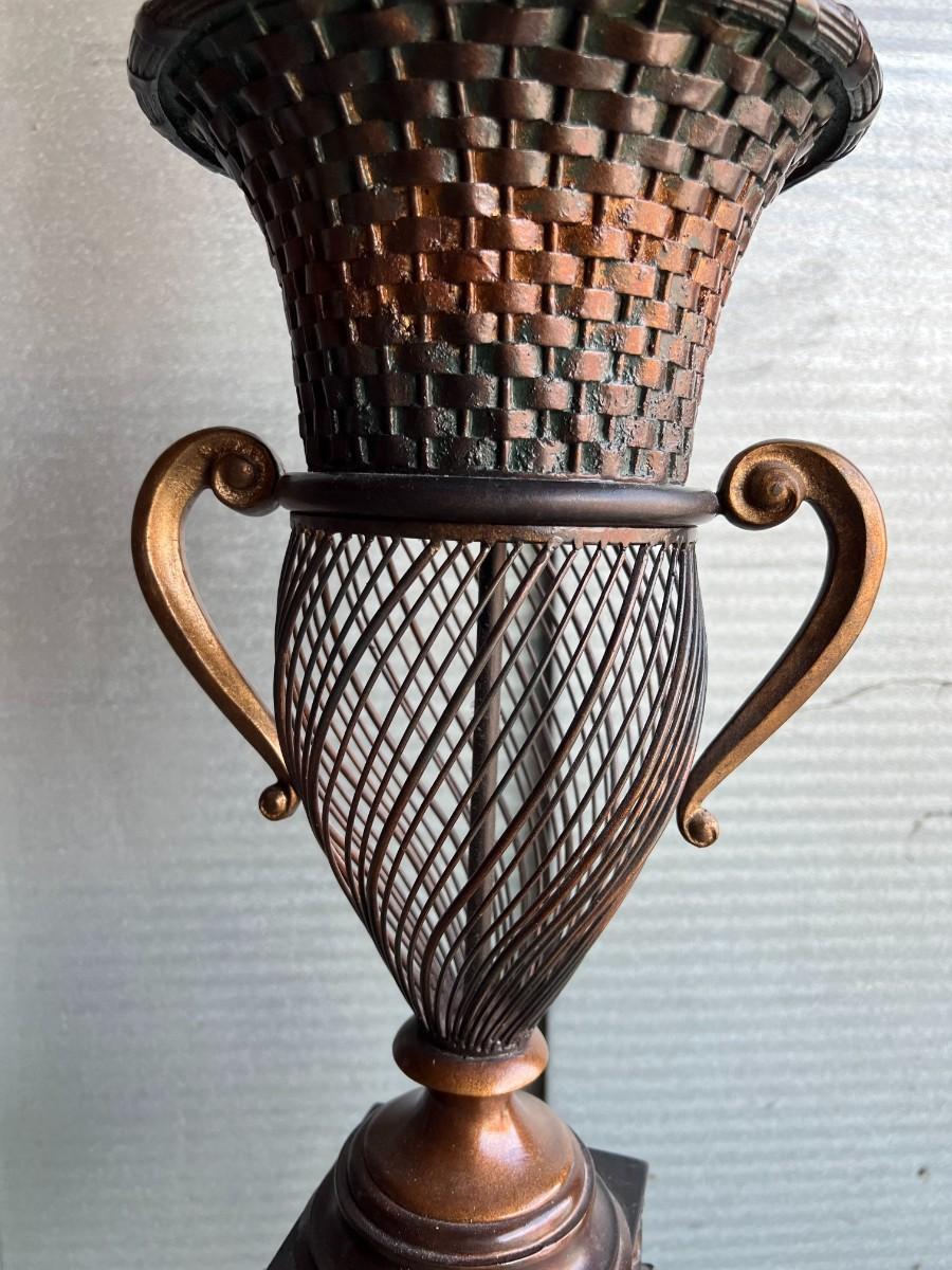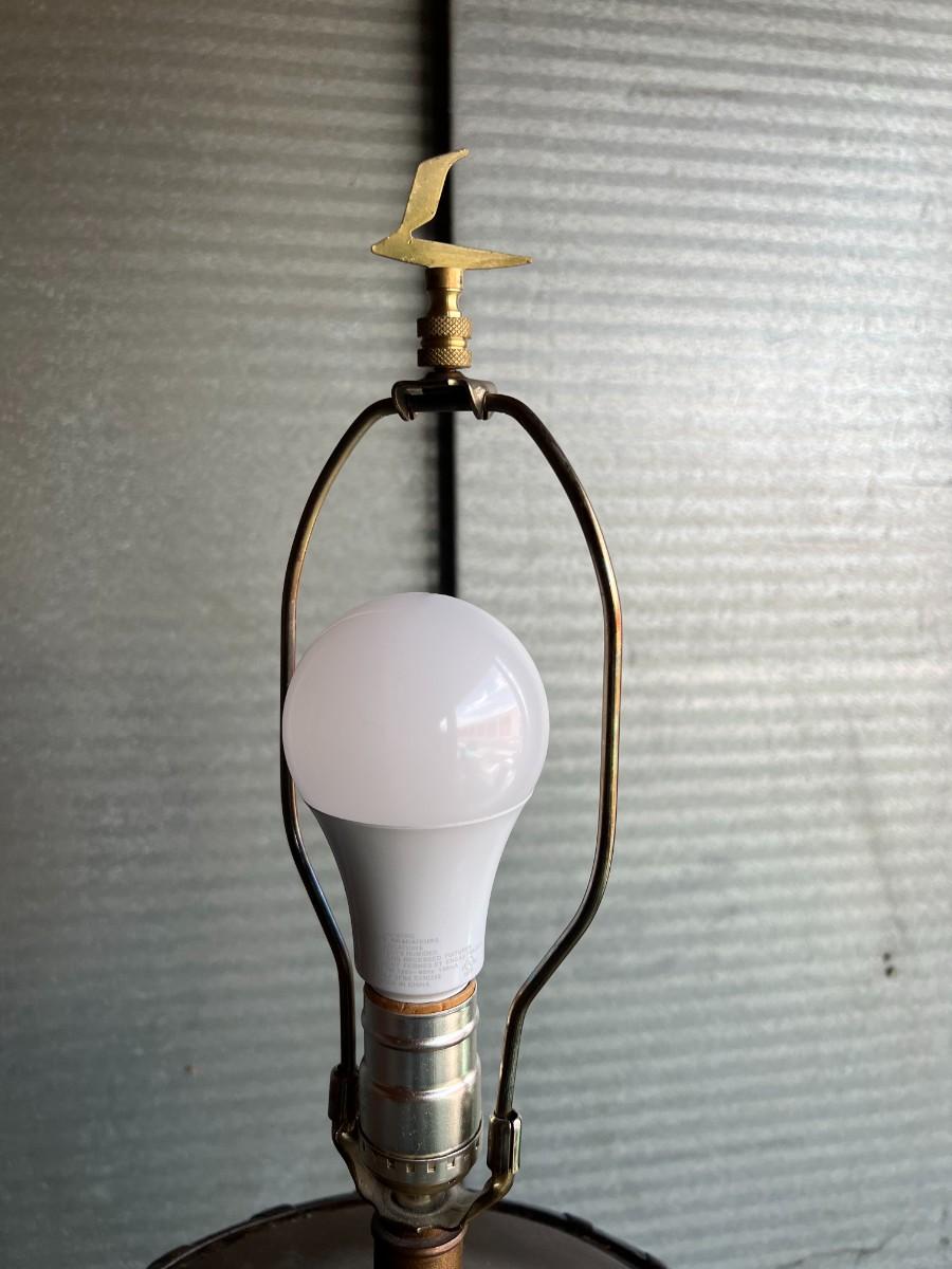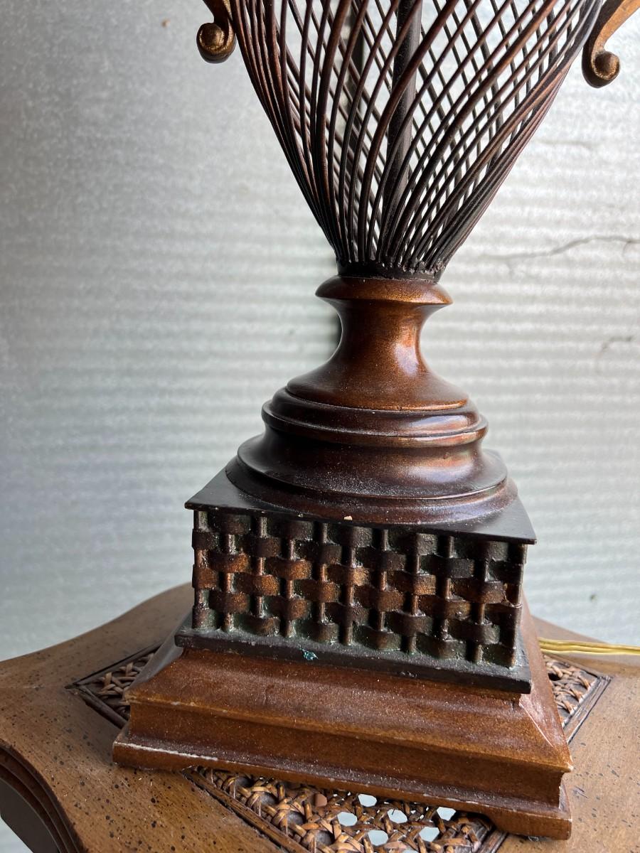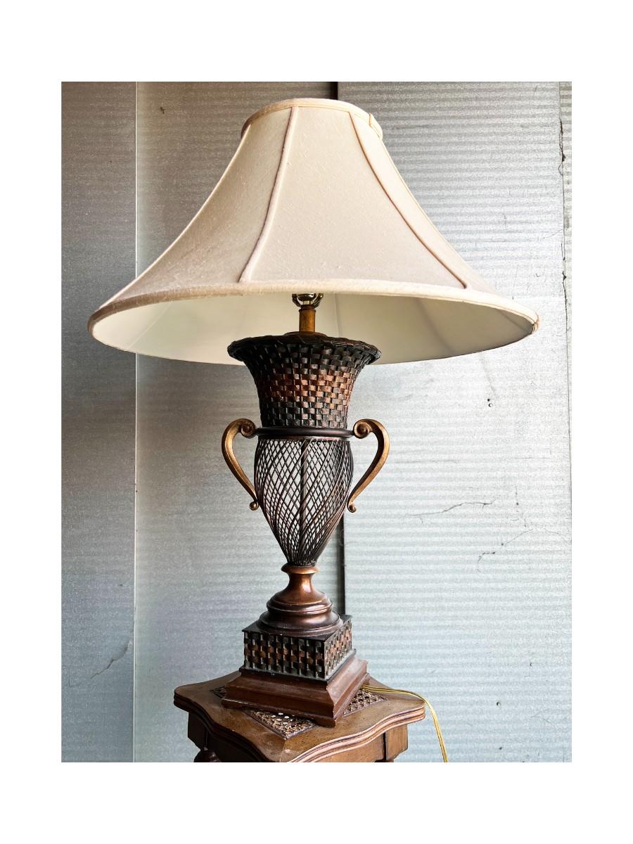 There is no significant damage to the lamp and is in overall good displayable condition. The lampshade has some light wear, but no other significant damage. Has not been plugged in and tested. Check pictures for more details and for sizing.