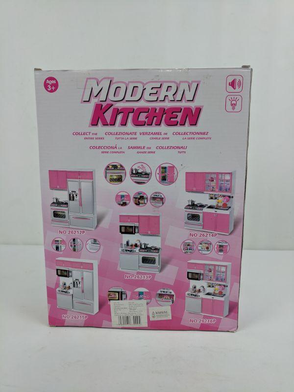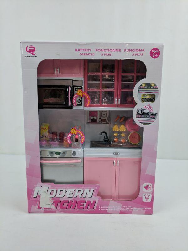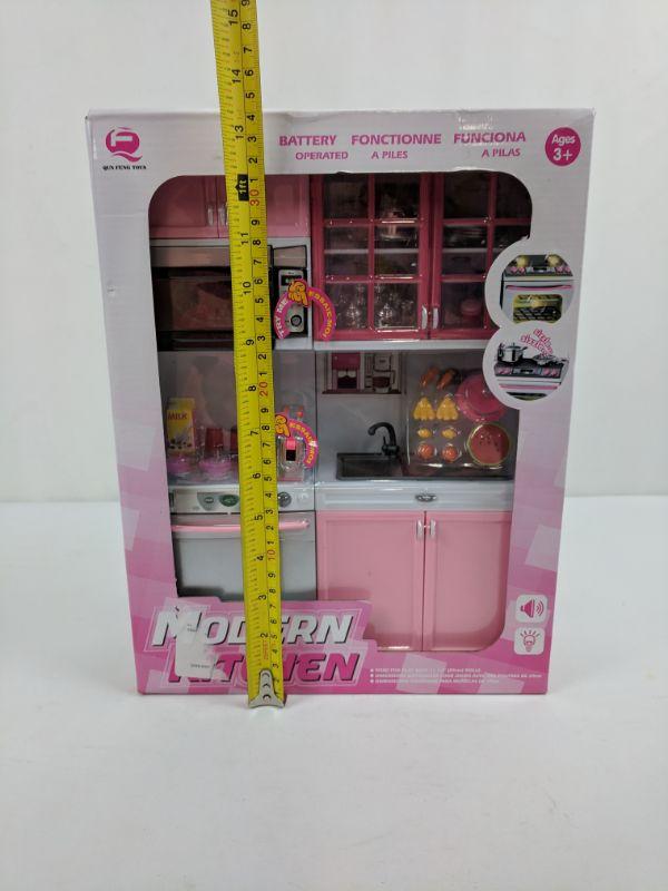 Modern Kitchen, Play Kitchen Dolls Size 11.5", Lights Up & Makes Sounds - New
