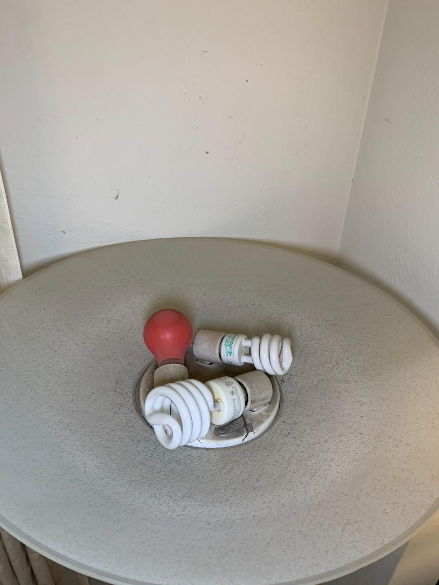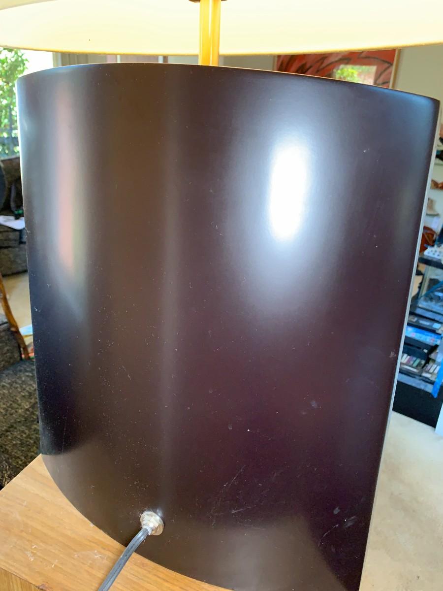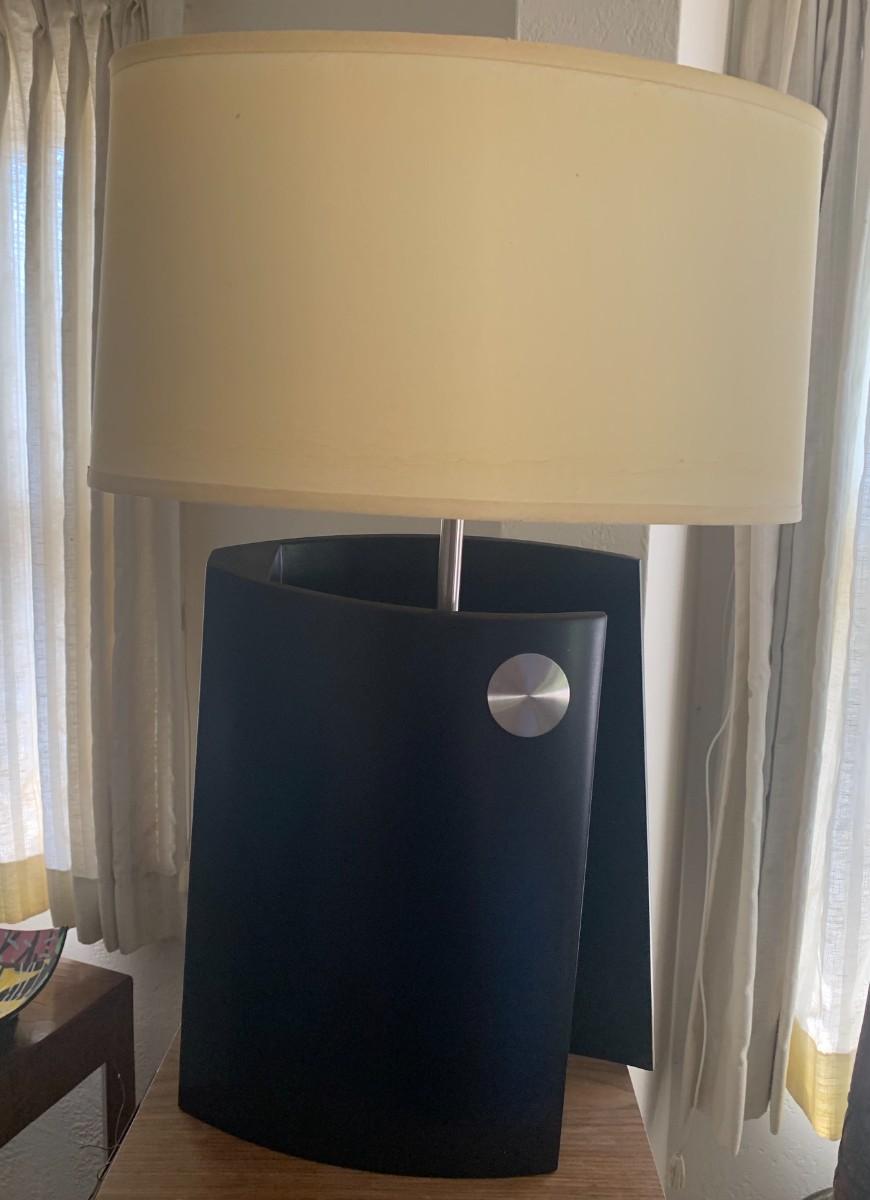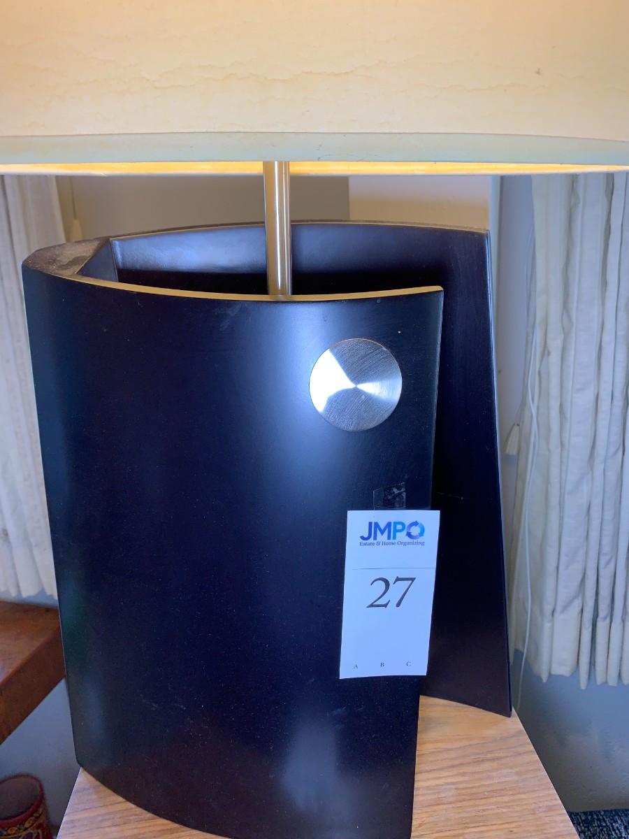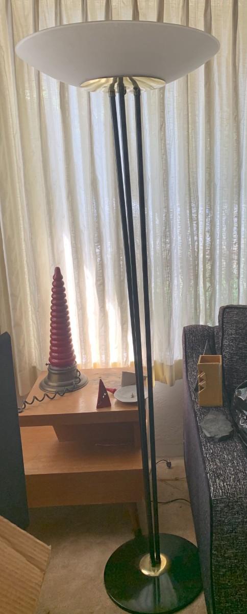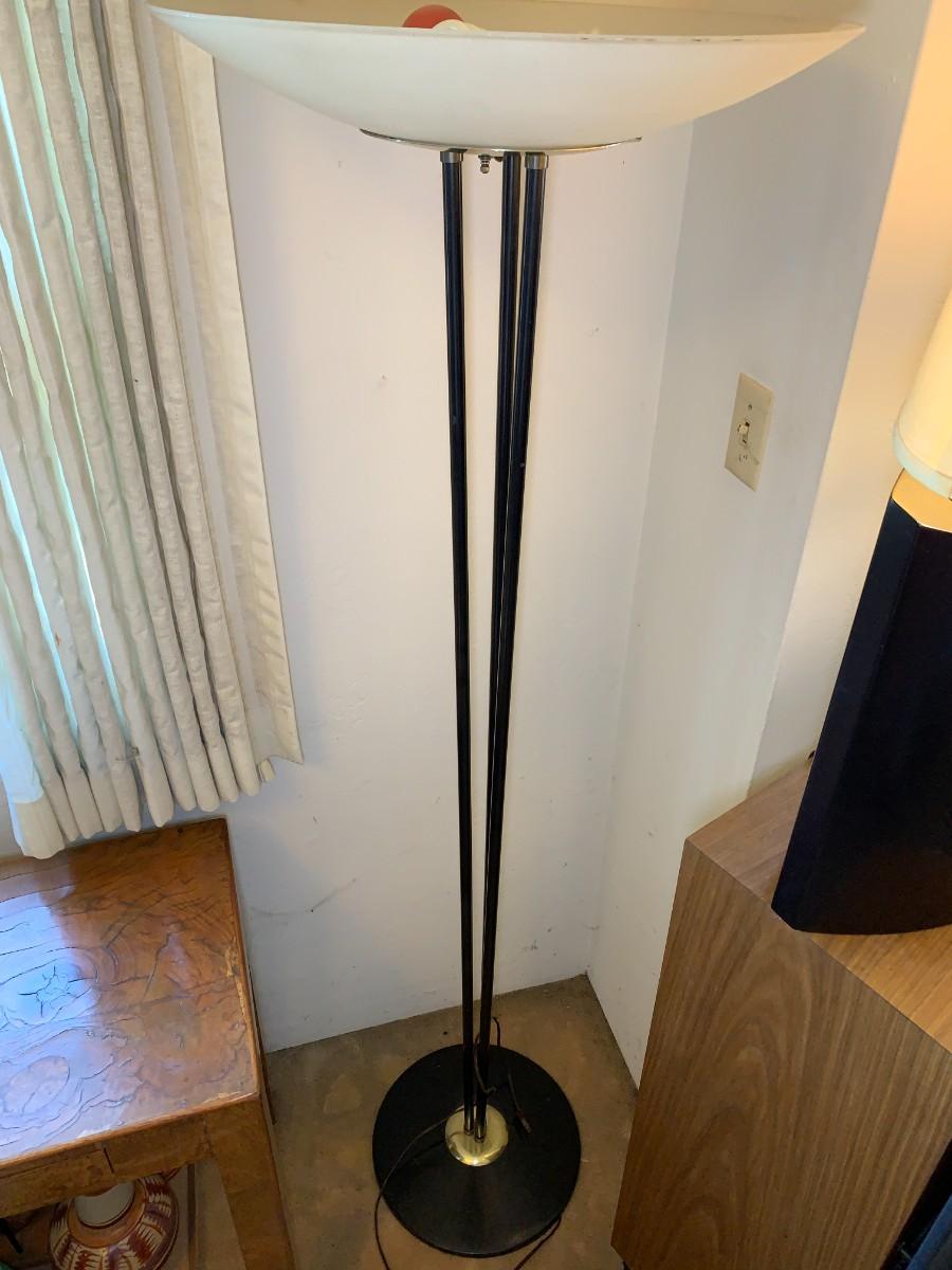 Table lamp and floor lamp. Table lamp has plastic curved base. Both work.