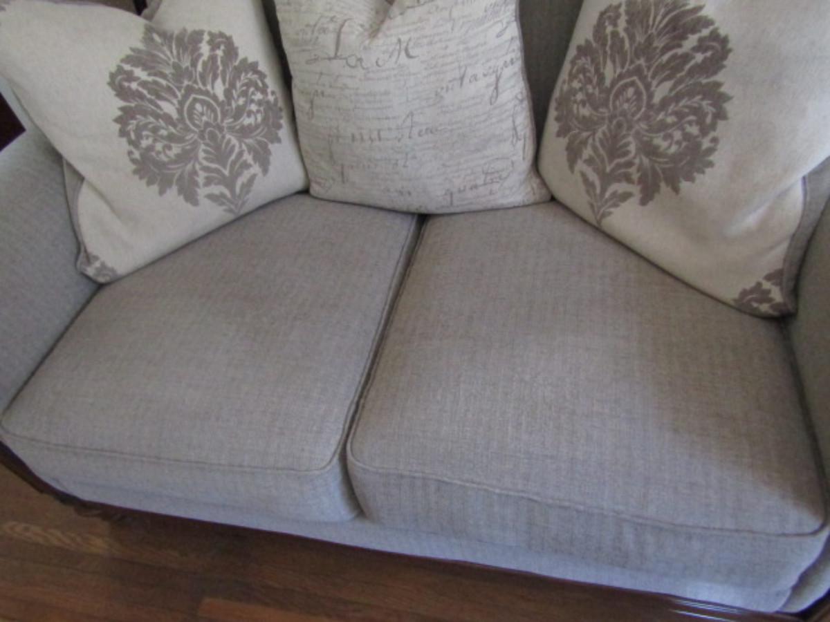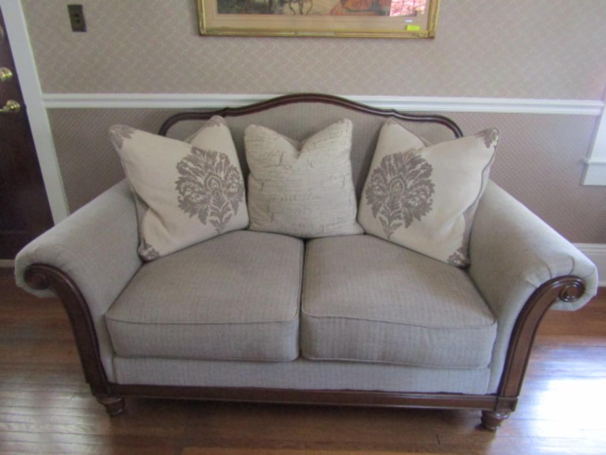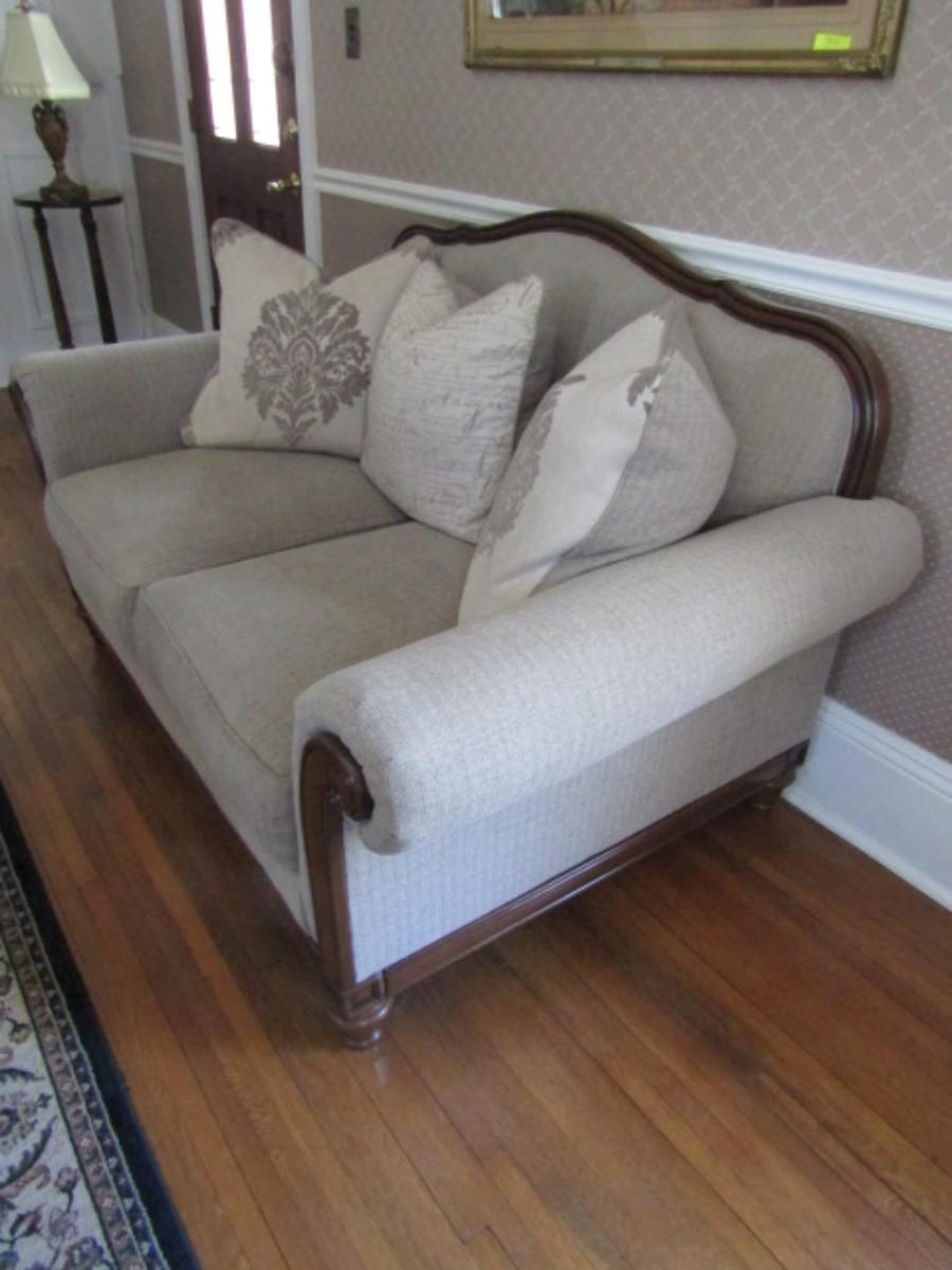 Modern Made Victorian Style Camelback Loveseat. In like new condition. Non-smoking home but has loving pet in house.