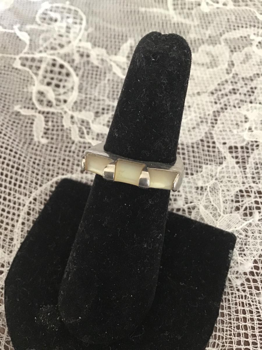 Modern Mother of Pearl Inlay Stackable Band Ring