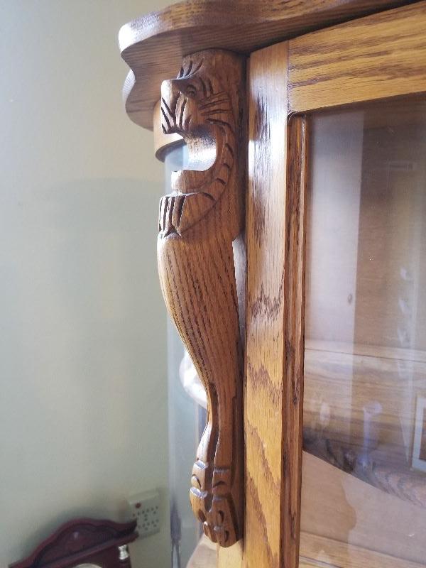 Modern Oak Antique Reproduction Semi Circle Curio Cabinet Claw Feet