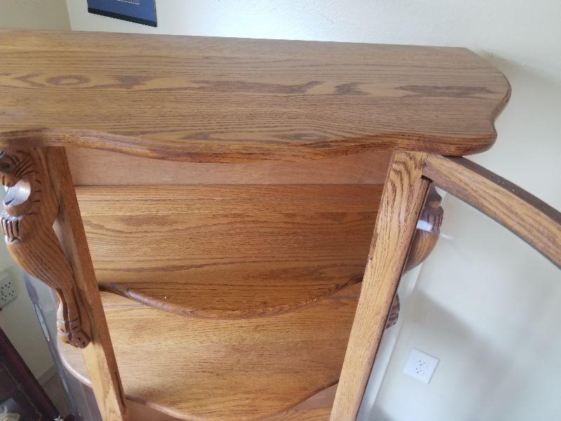 Modern reproduction and in good condition has 2 shelves adjustable shelves with slotted back for displaying plates. No damage, does need a light cleaning. Auction is for curio cabinet only.