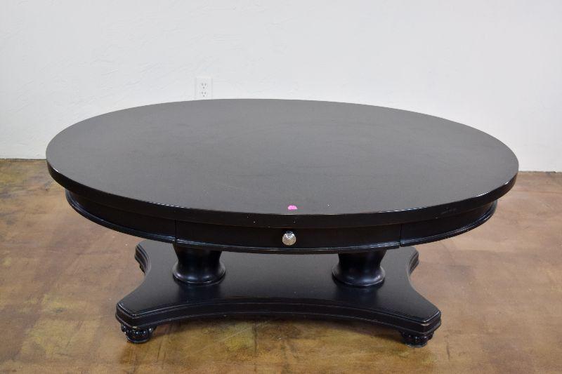 The piece is in fair overall condition, with some scuffs on the surface from general wear. There may be some nicks in the finish around the edges. The item measures approximately 34.25" deep X 52" wide X 21" tall.