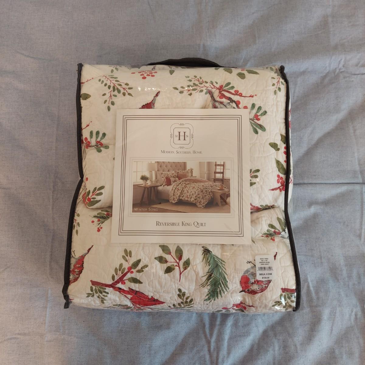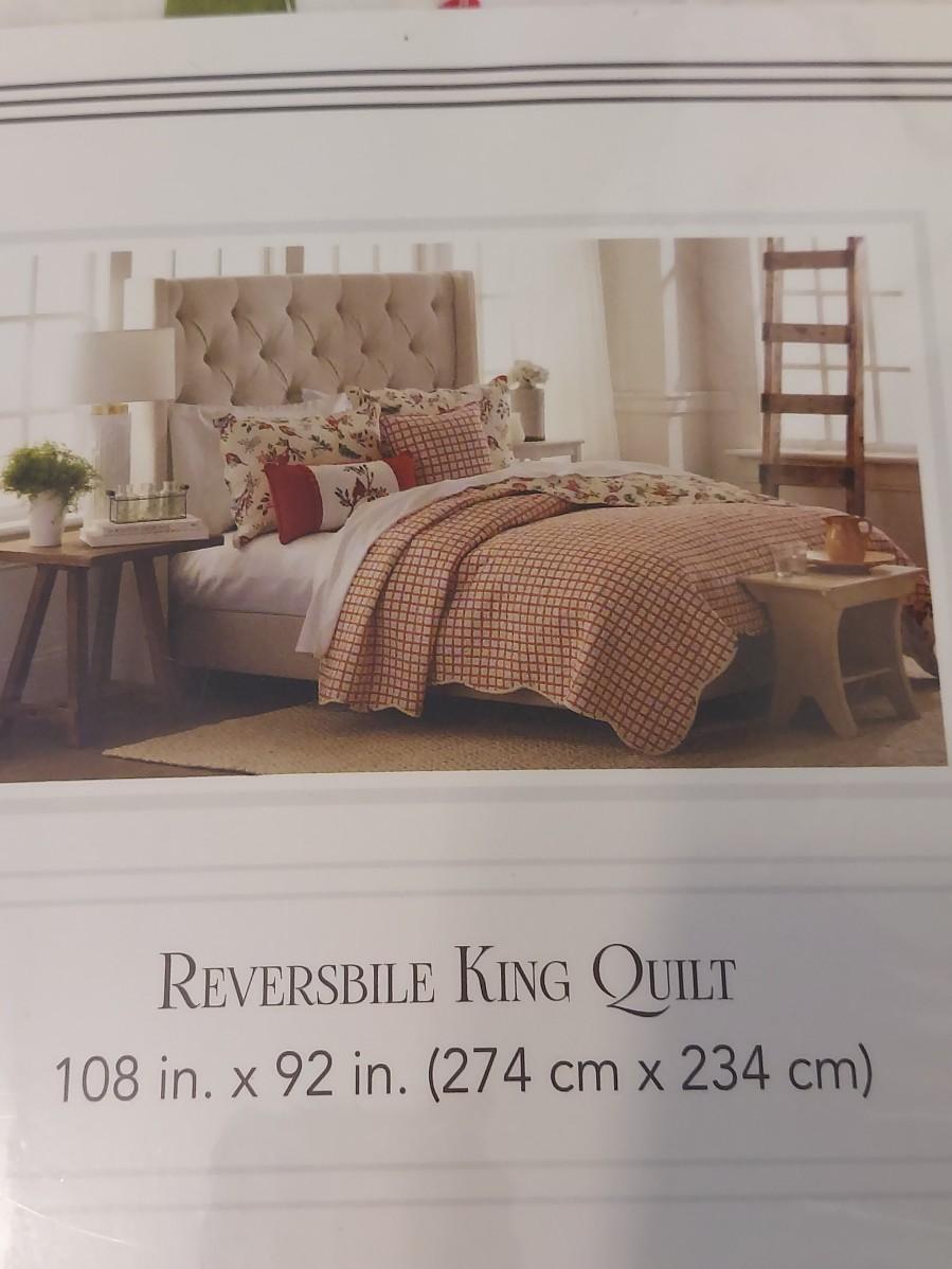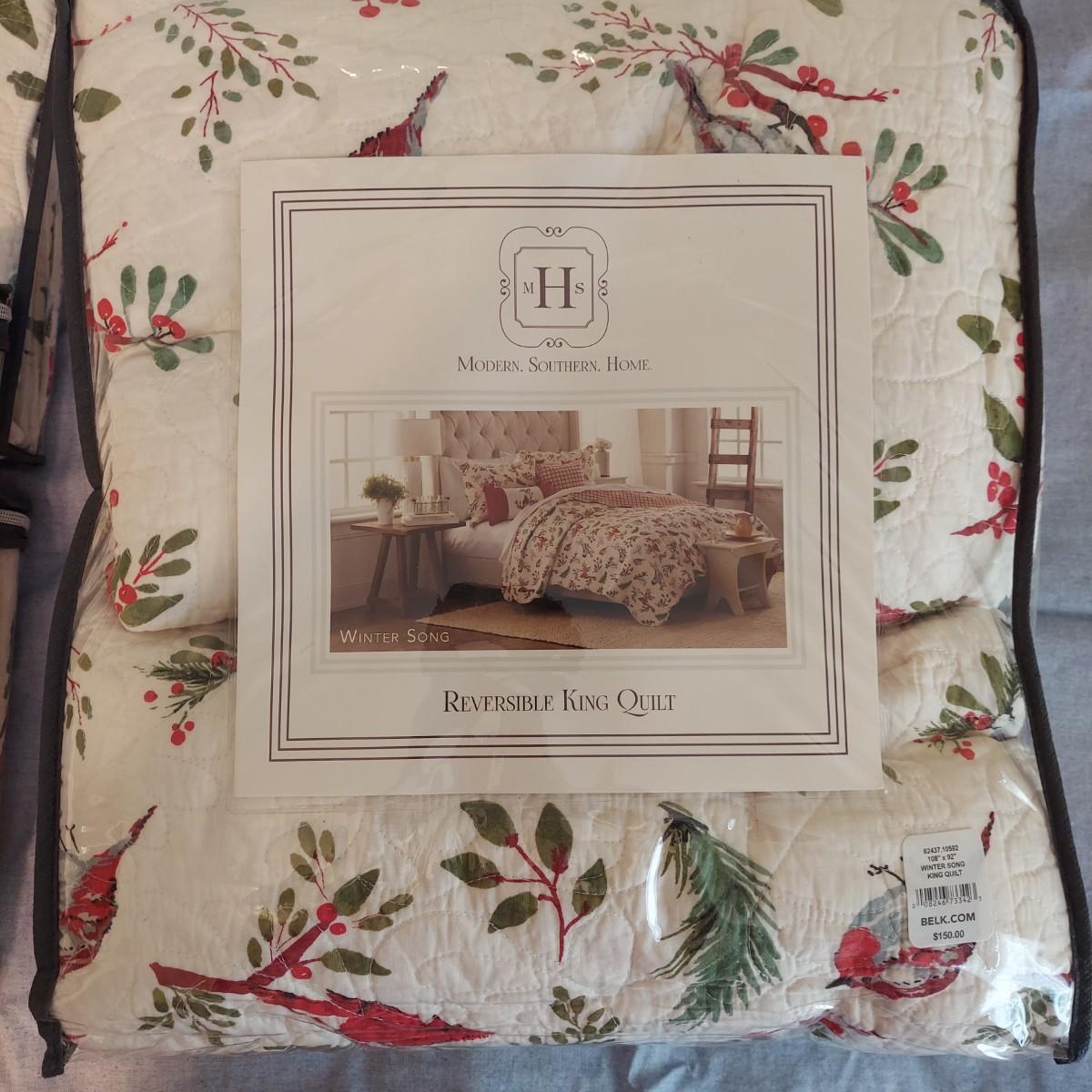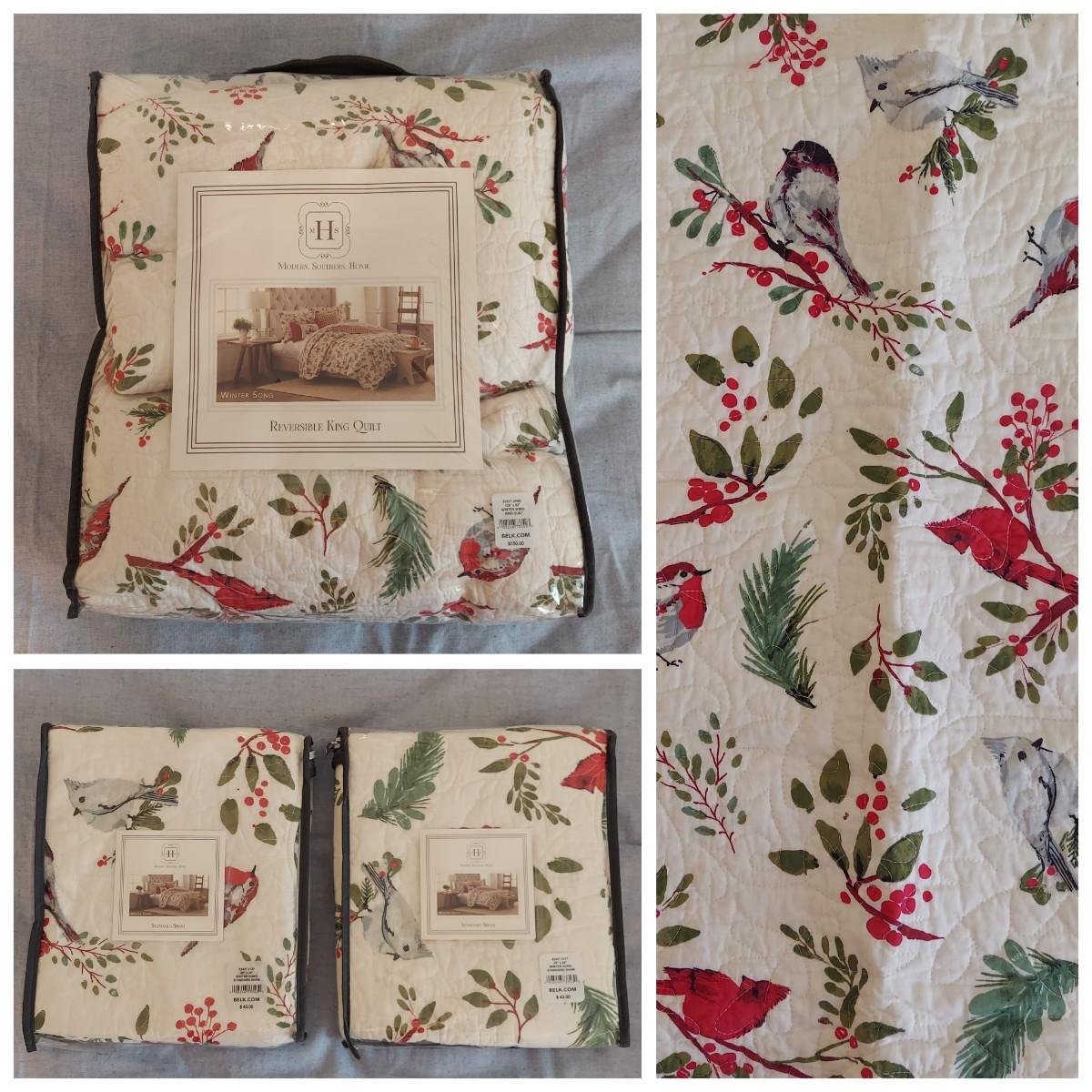King size reversible quilt by Modern Southern Home brand. Includes three standard pillow shams and two king size zip pillow covers. Matching pieces appear to be unused and in original packaging. Please see photos for details. Shipping available