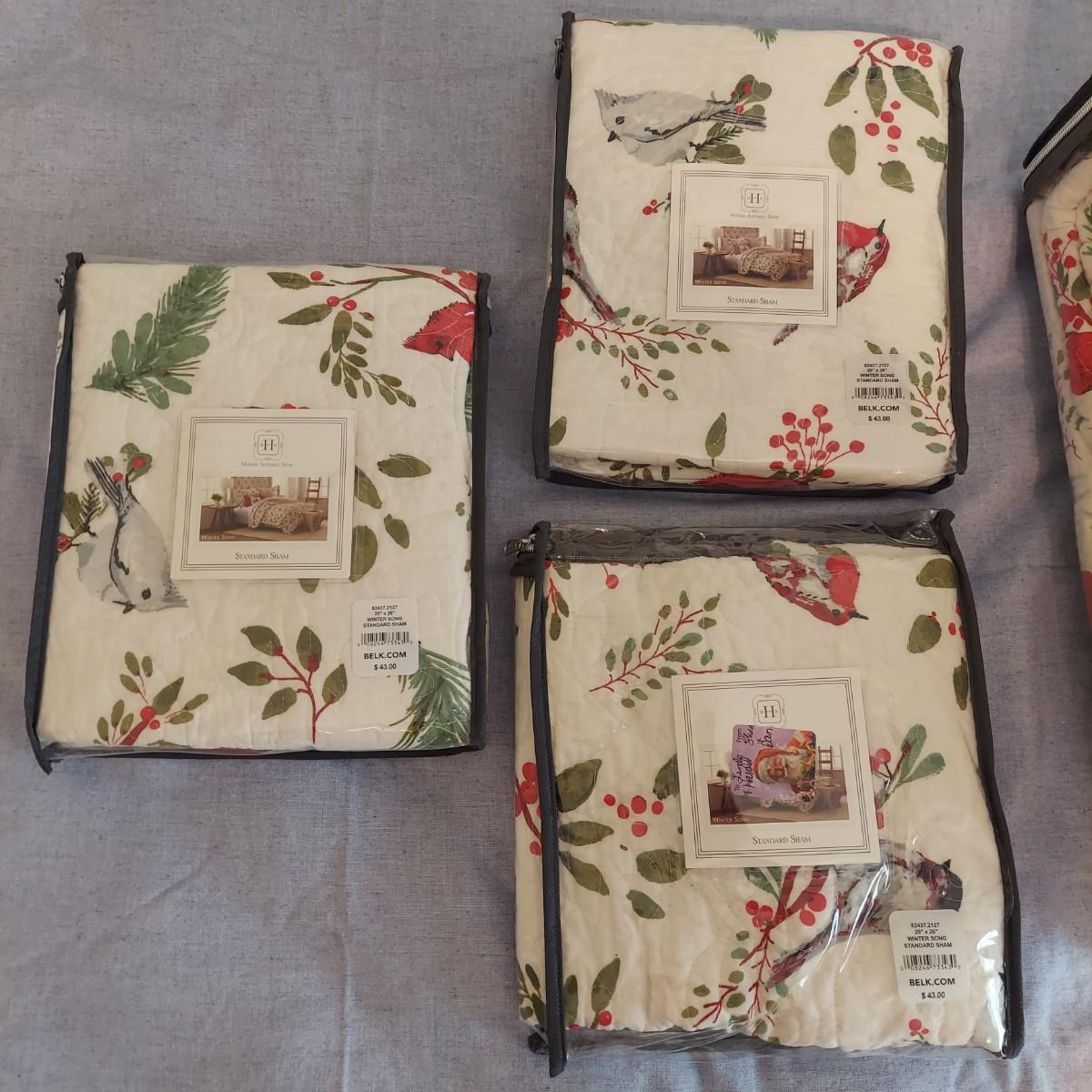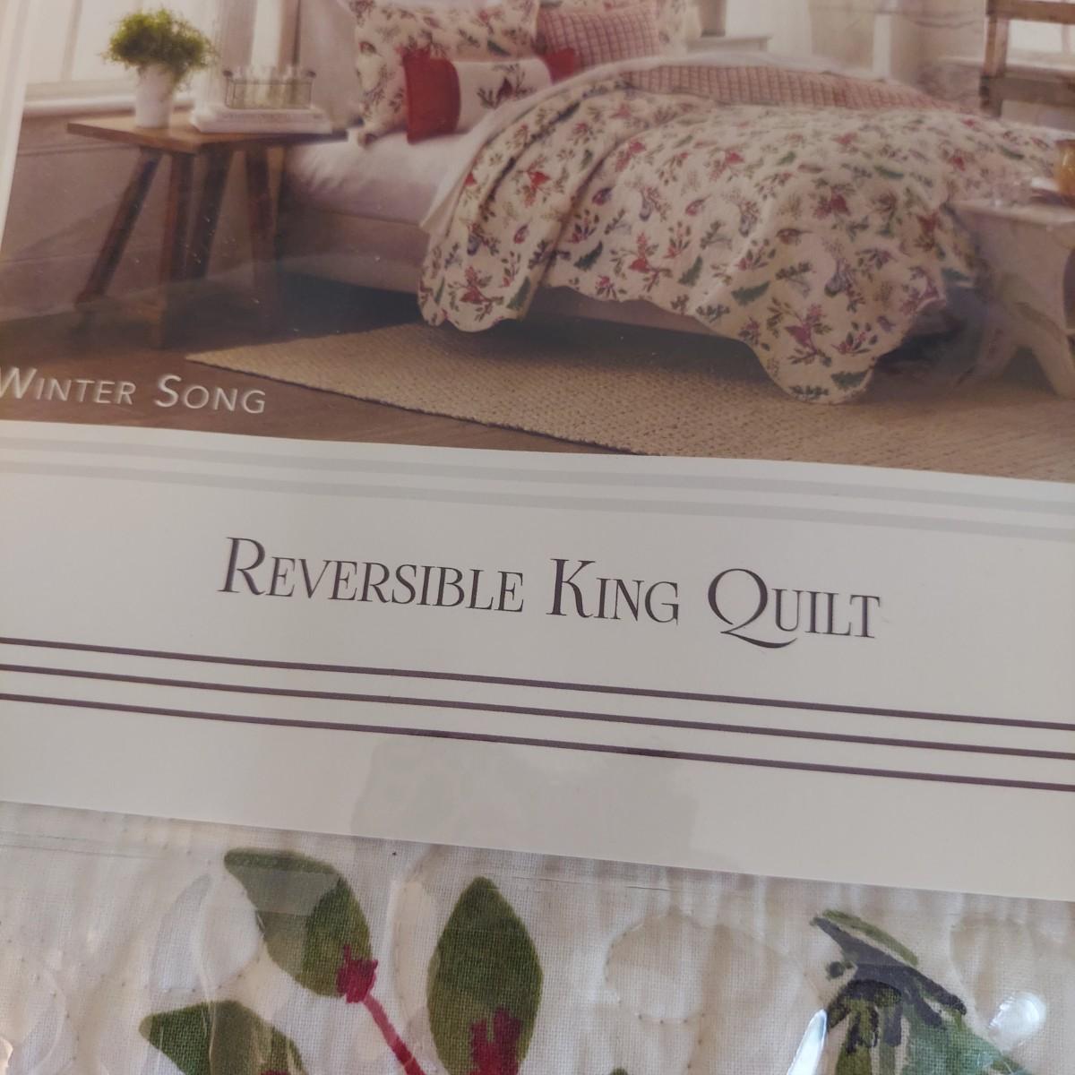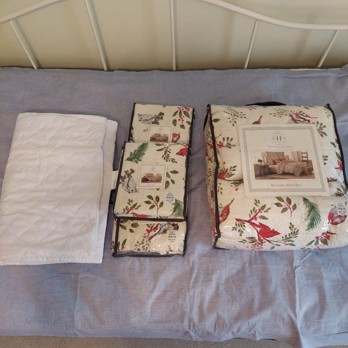 King size reversible quilt by Modern Southern Home brand. Includes three standard pillow shams and two king size zip pillow covers. Matching pieces appear to be unused and in original packaging. Please see photos for details. Shipping available