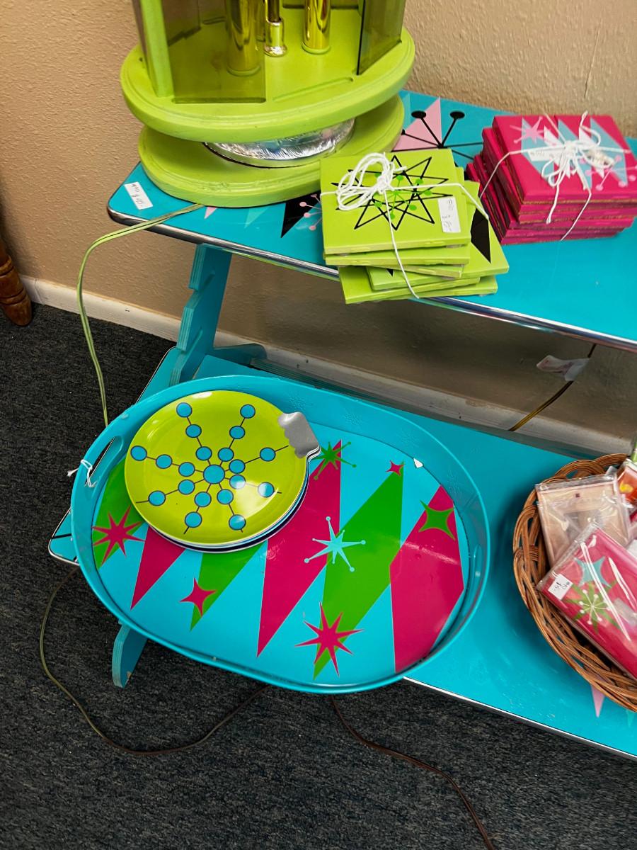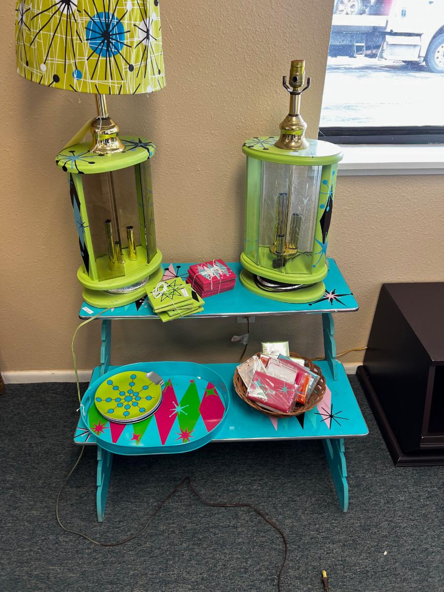 Modern Stuff: Turquoise, Green Shelf, Lamps, Coasters etc.