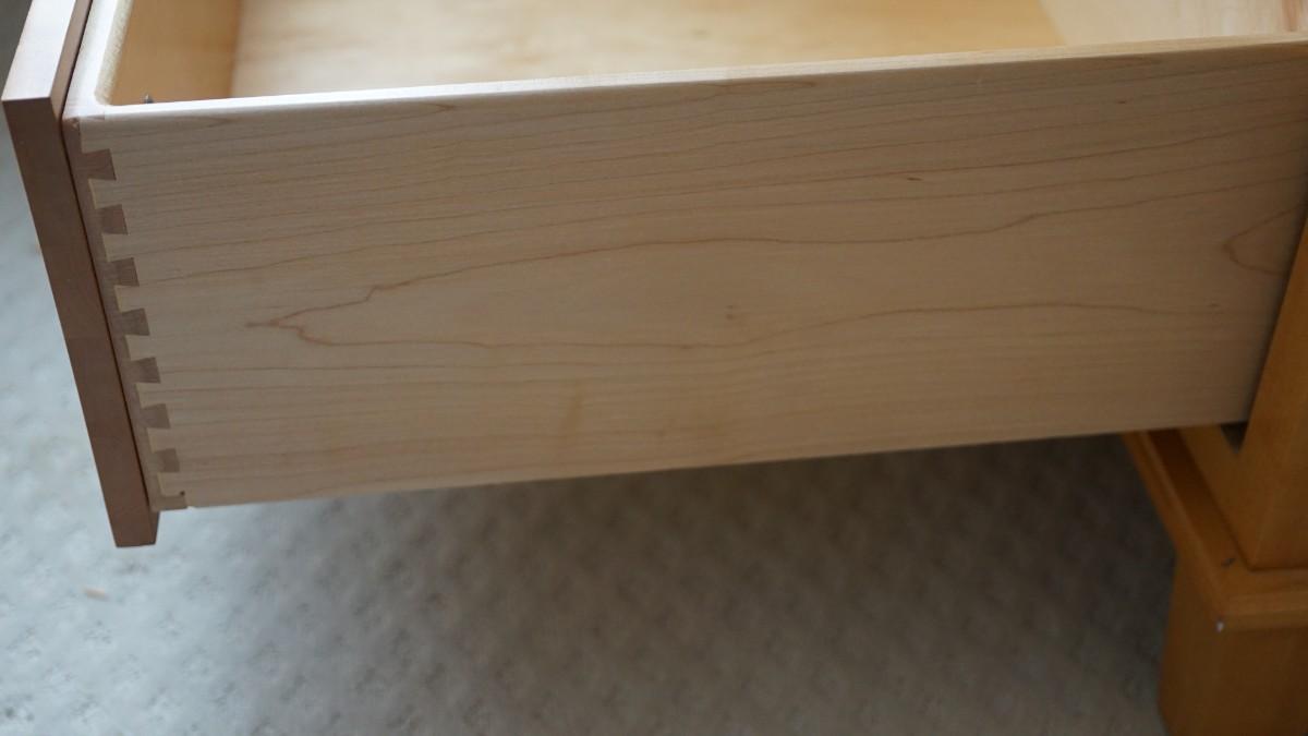 The cabinet has maple lined dovetailed drawers quality all the way around