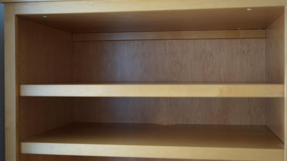 very useful nice maple cabinet with adjustable shelves and one lower shelf.