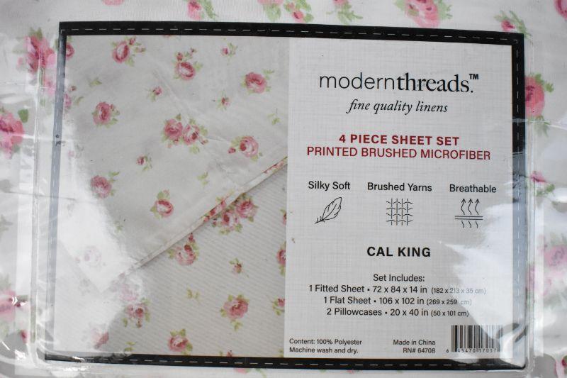 Modern Threads 4 Piece Sheet Set, California King, Sweet Rose Ivory - New