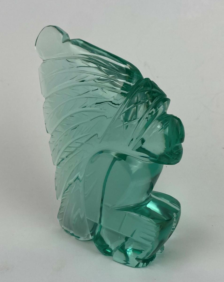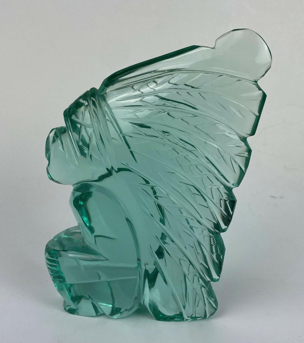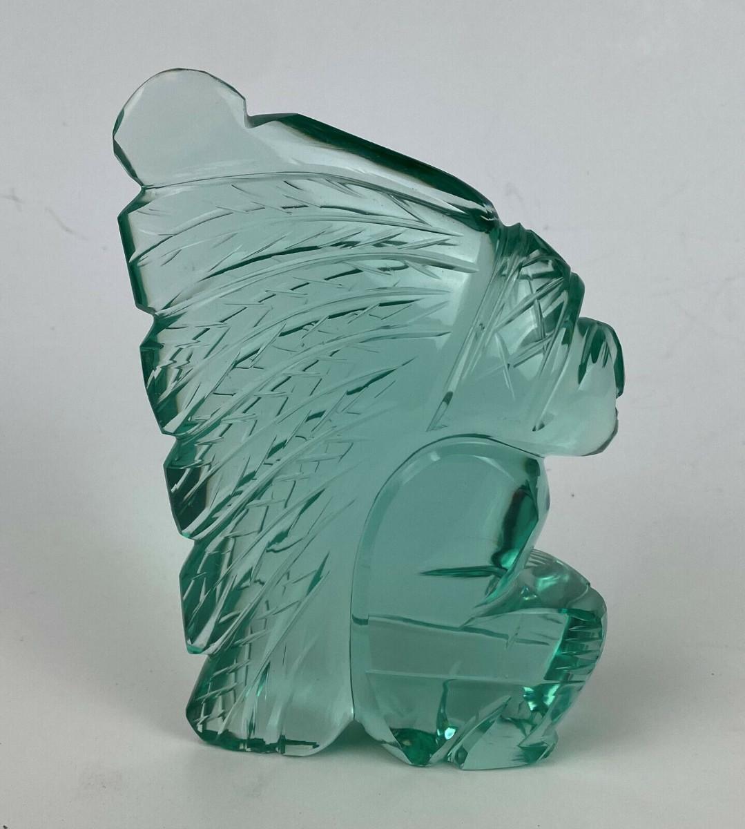 Here is a Modern stylized tinted cut glass figural paperweight...This Native American in headdress stands 5.5"/14mm high by 4"/10mm wide...No flaws found...Unknown maker or exact origin on this estate find....Flawless condition.