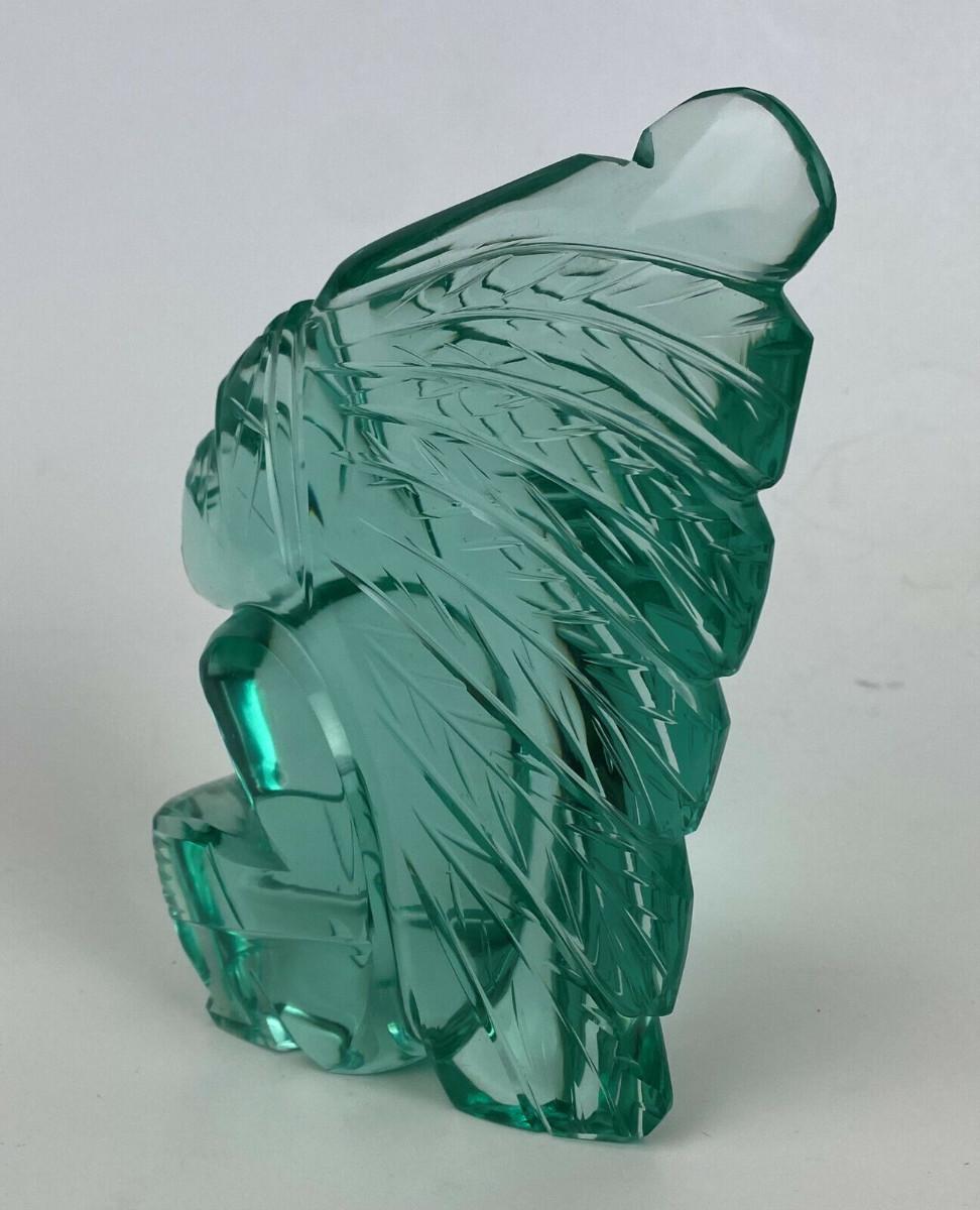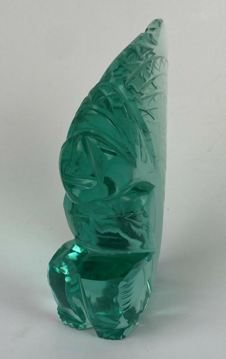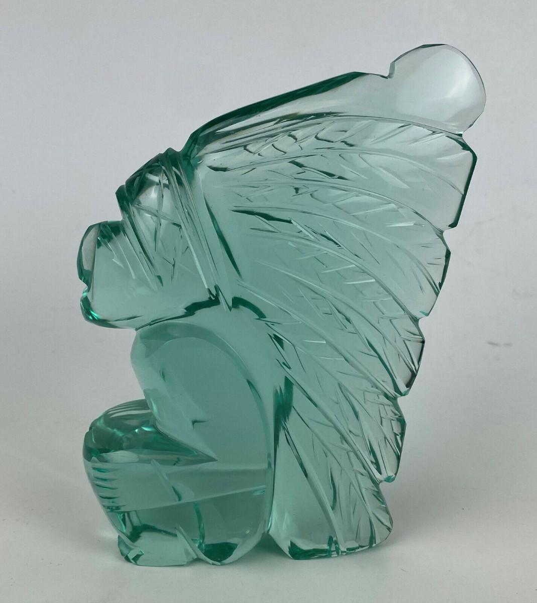 Here is a Modern stylized tinted cut glass figural paperweight...This Native American in headdress stands 5.5"/14mm high by 4"/10mm wide...No flaws found...Unknown maker or exact origin on this estate find....Flawless condition.