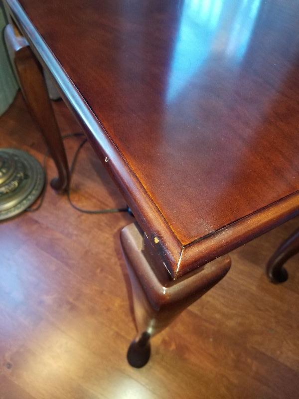 Unmarked reproduction similar to an Ethan Allen Style. Does have a drawer in front. Shows some minor wear and tear on the edges, see pics.