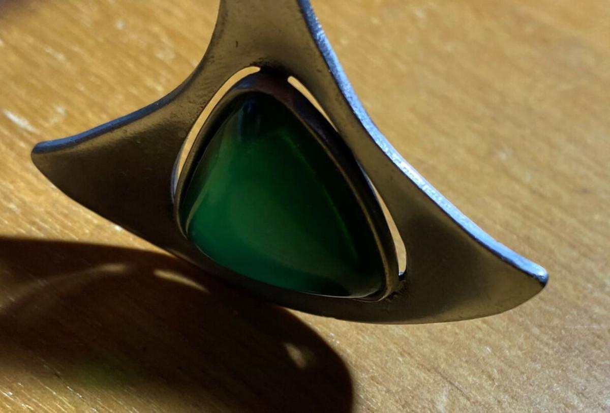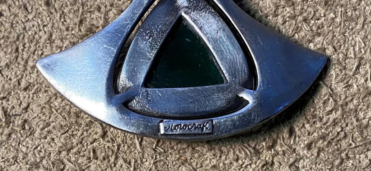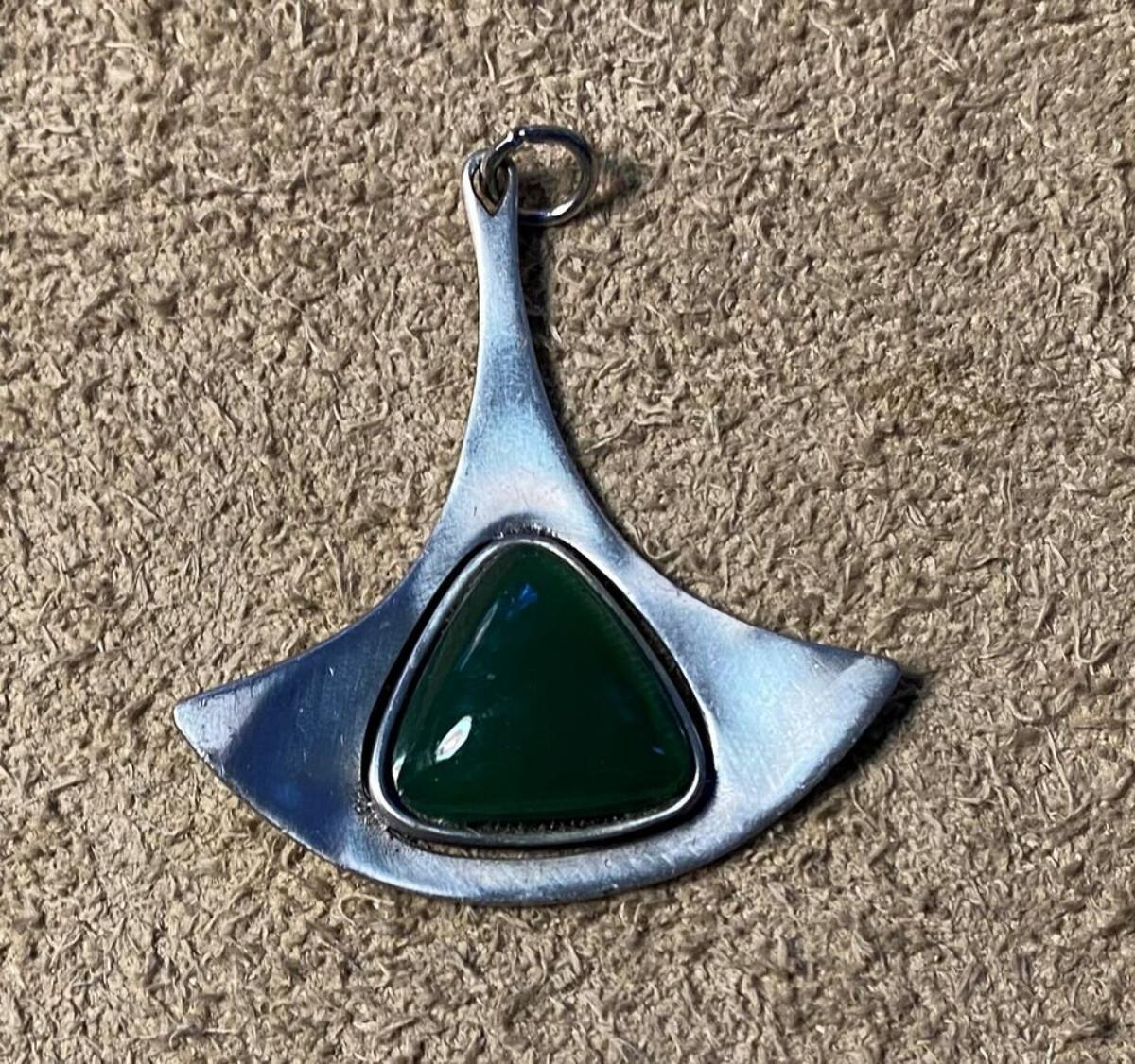 modernist brutalist COROCRAFT SILVER & GREEN GLASS PENDANT