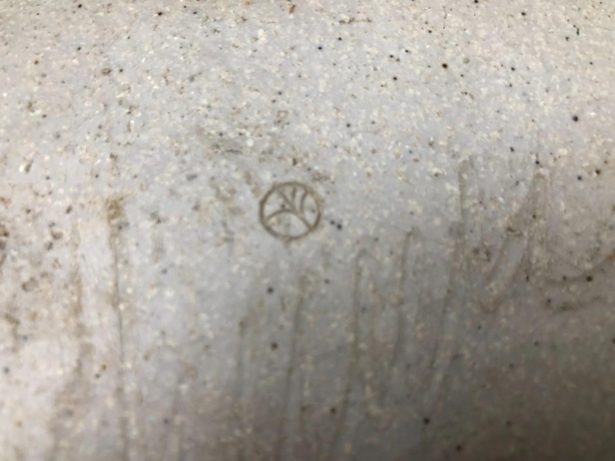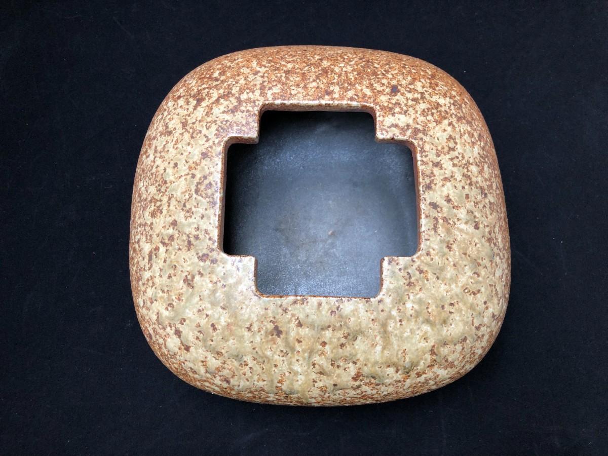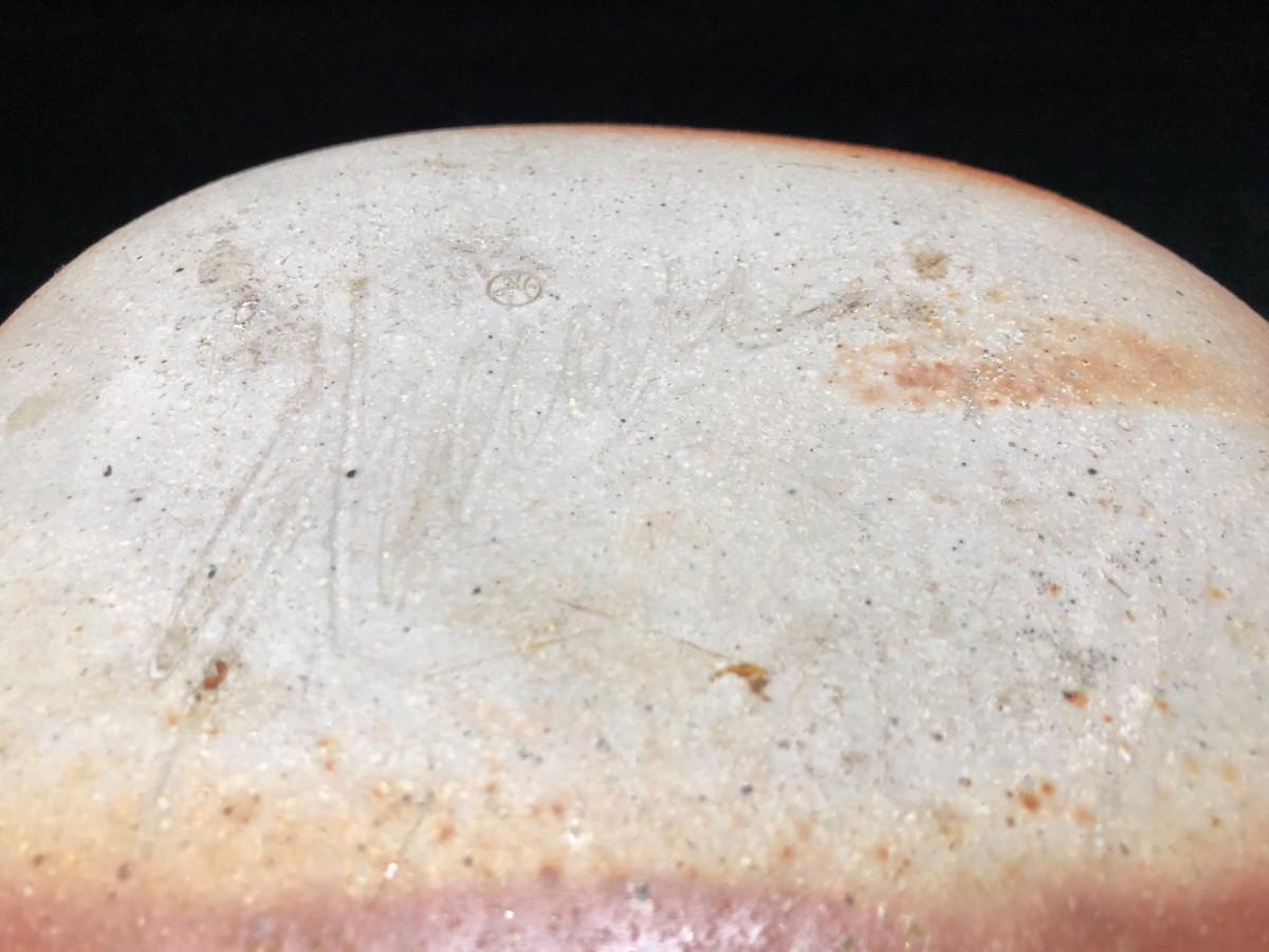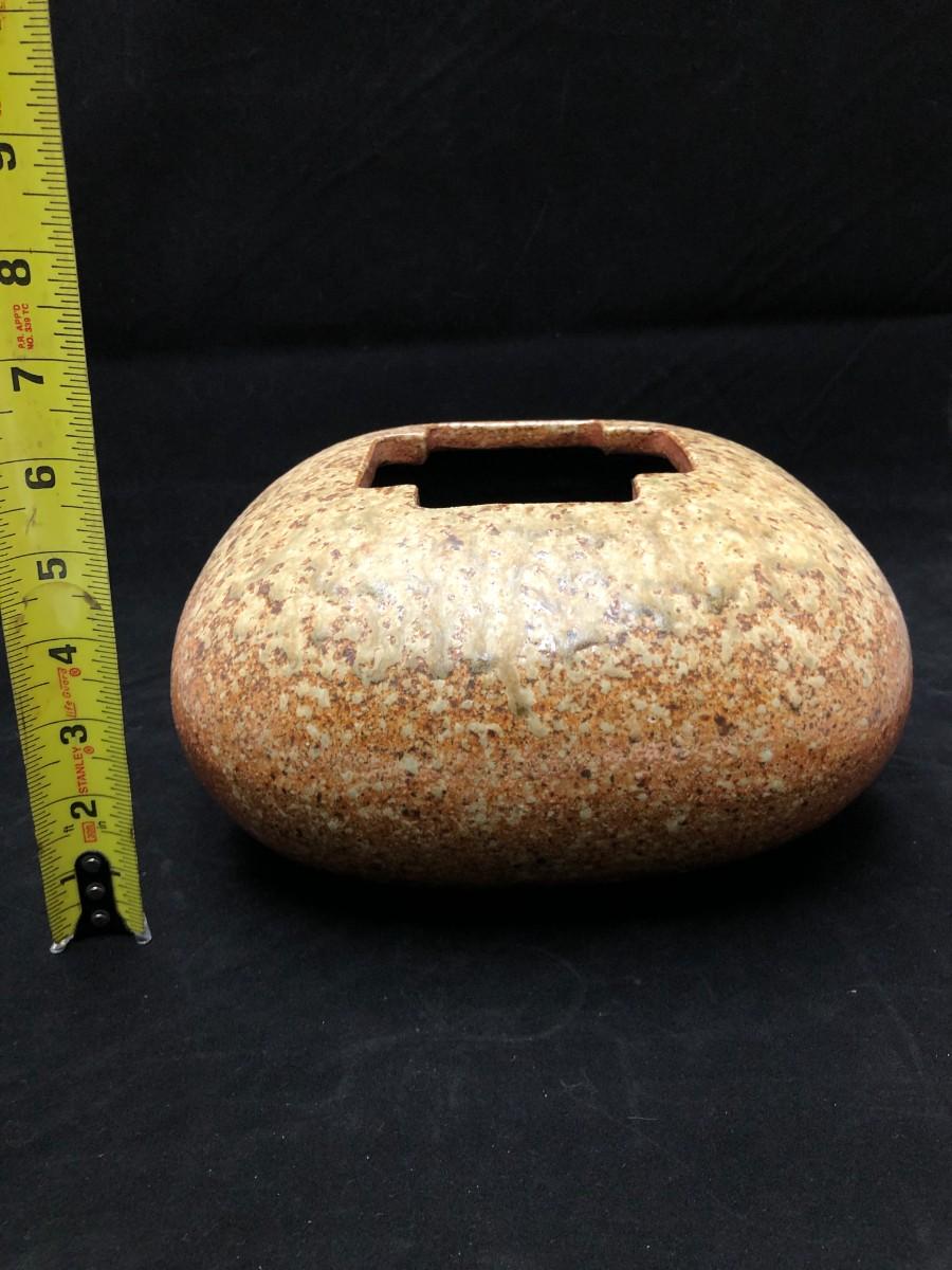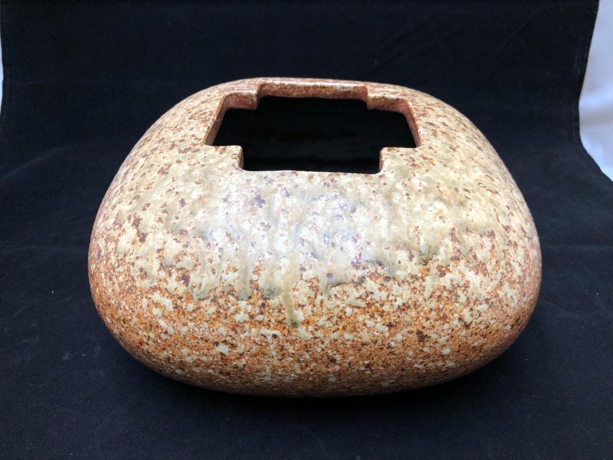 Beautiful modernist vessel signed by the artist. Thick cross design opening. In very good condition.