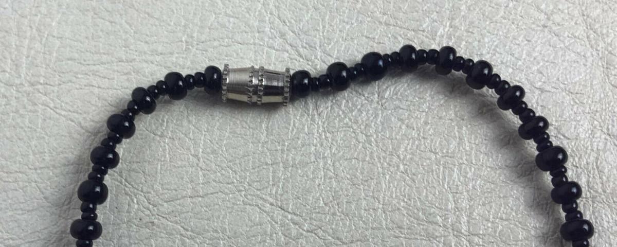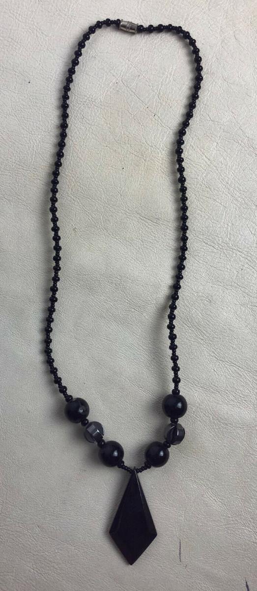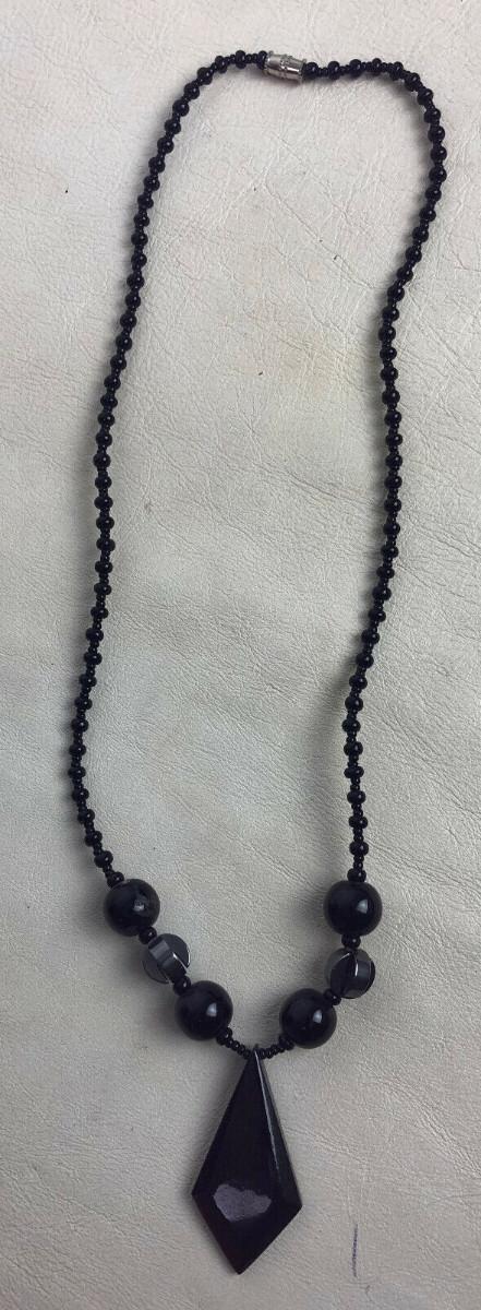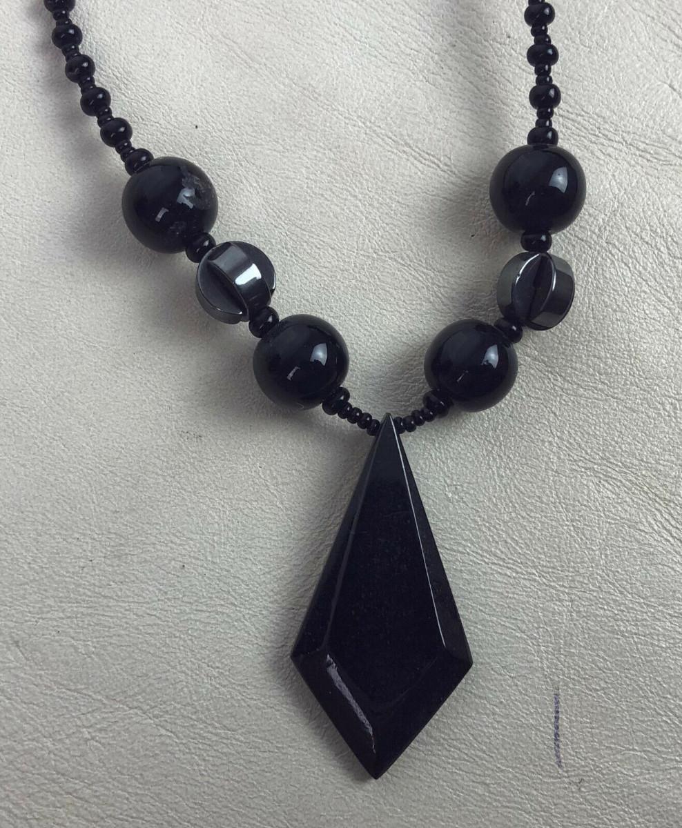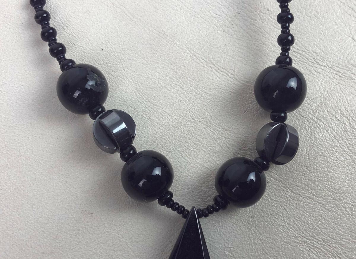 Modernist all black 10" bead necklace that I believe is Onyx and Hematite...Unknown maker.