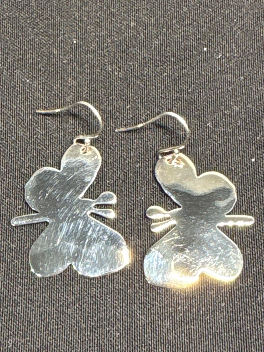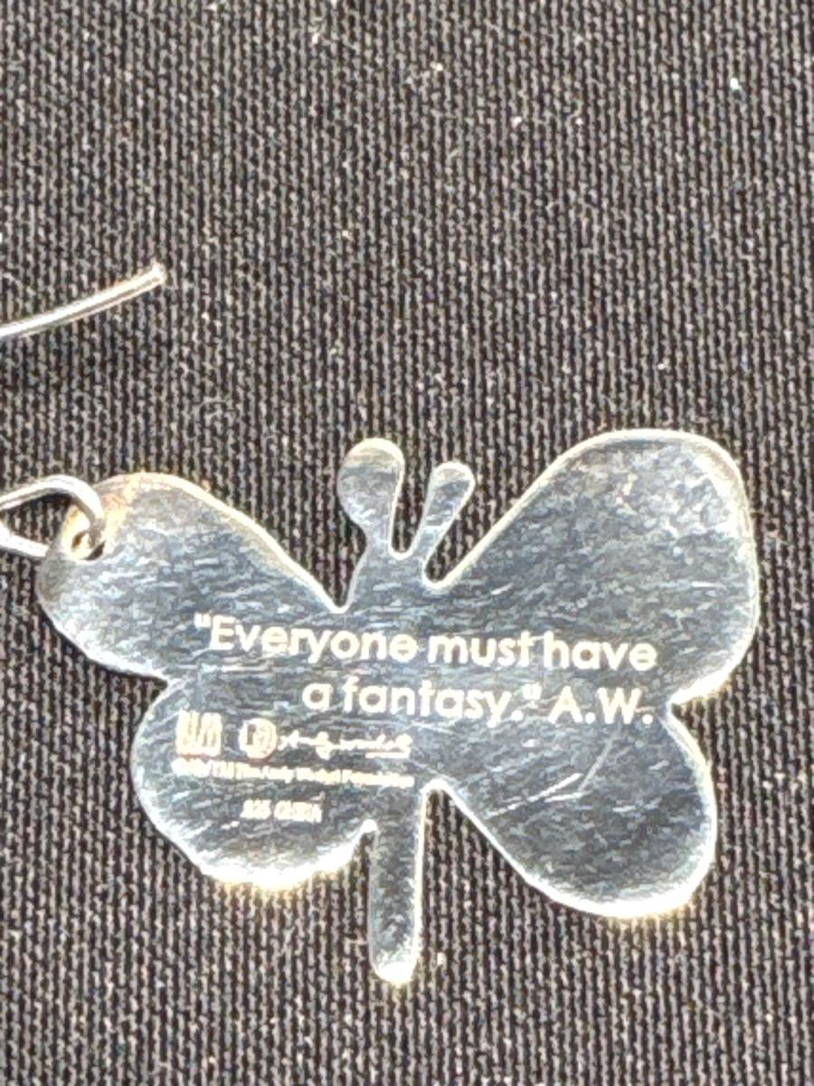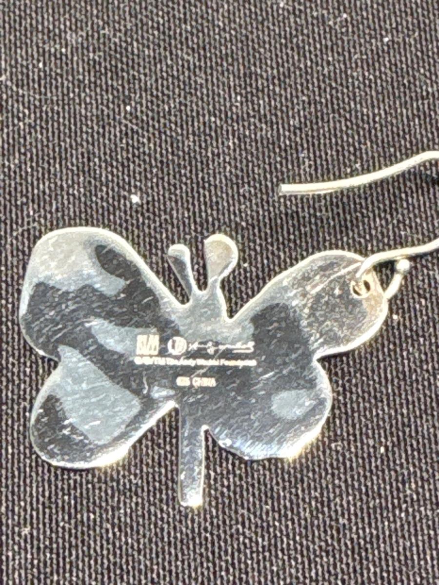 Beautiful earrings by Robert Lee Morris with quote from Andy Warhol. Sterling silver.