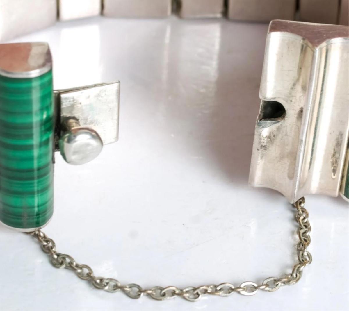 Modernist Taxco 970 Silver Malachite Necklace & Bracelet