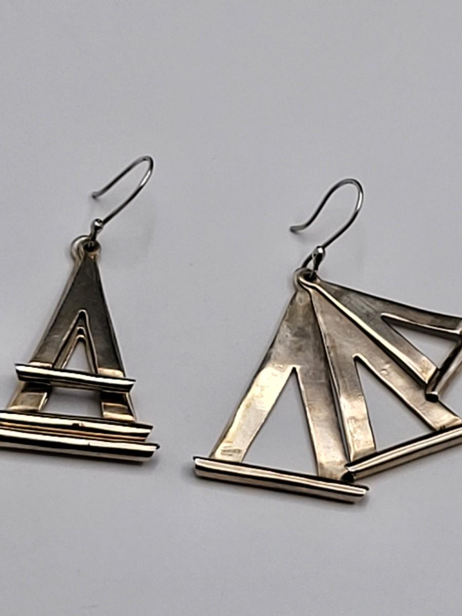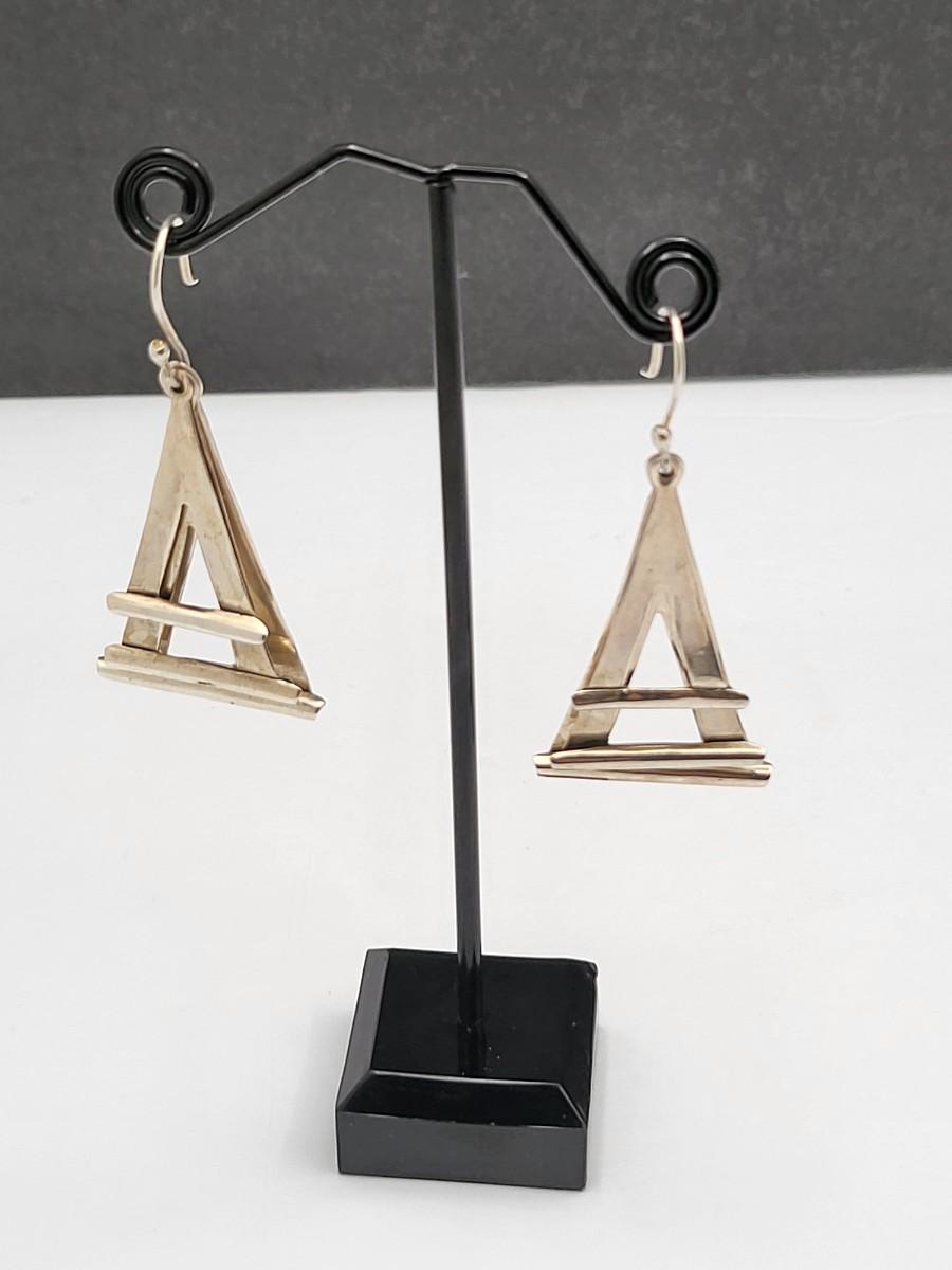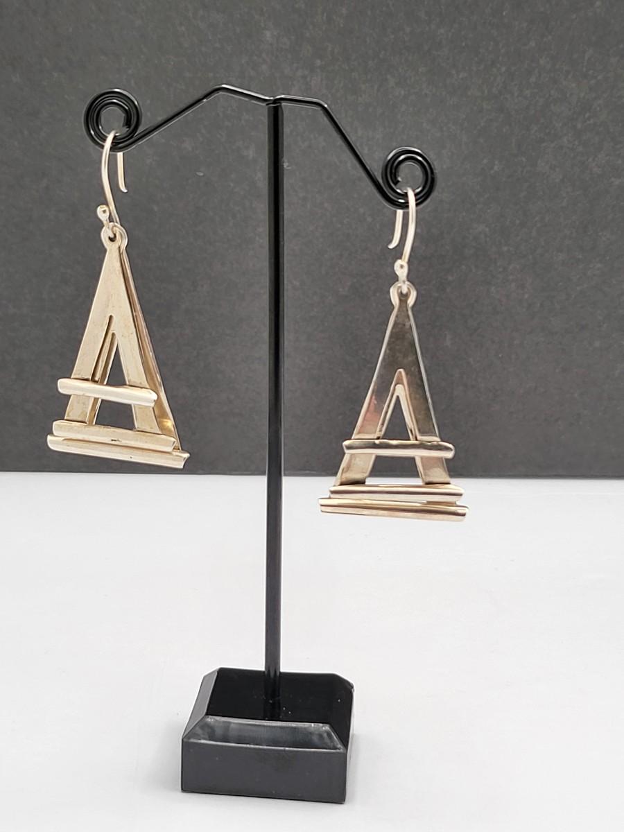 Modernist Three Triangle Dangle Earrings 12.7gr