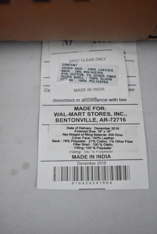 MoDRN Industrial Cow Leather Decorative Throw Pillow, 16" x 16" - New