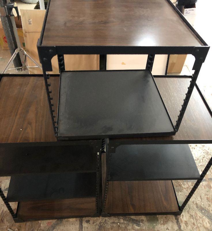 Good, used condition on these modular audio/electronic rack stands...