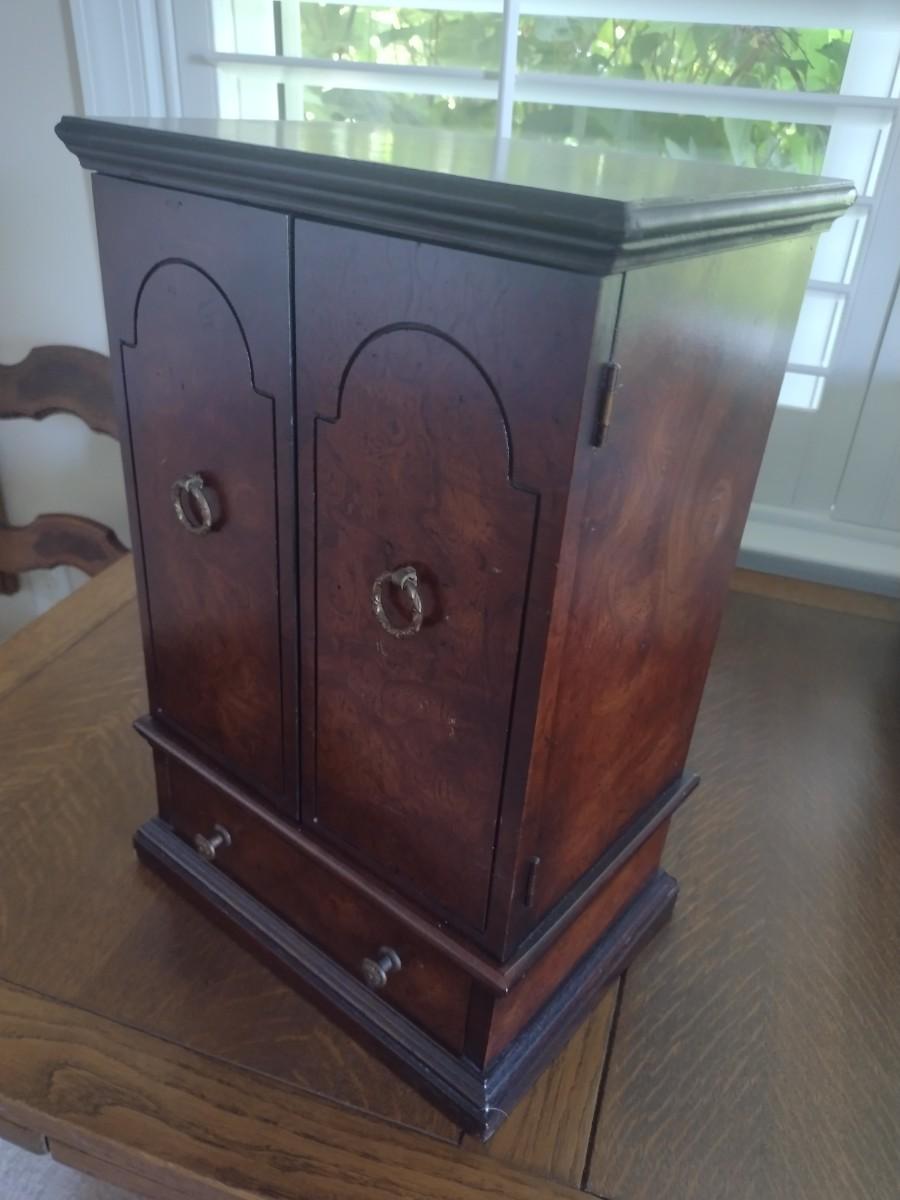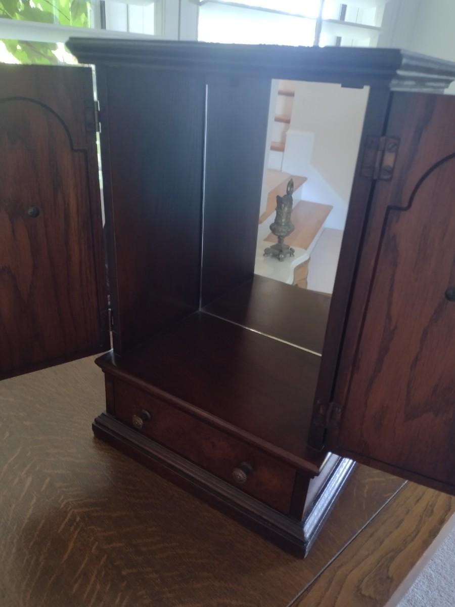 Mohagany Double Door Tabletop Doll Display Cabinet