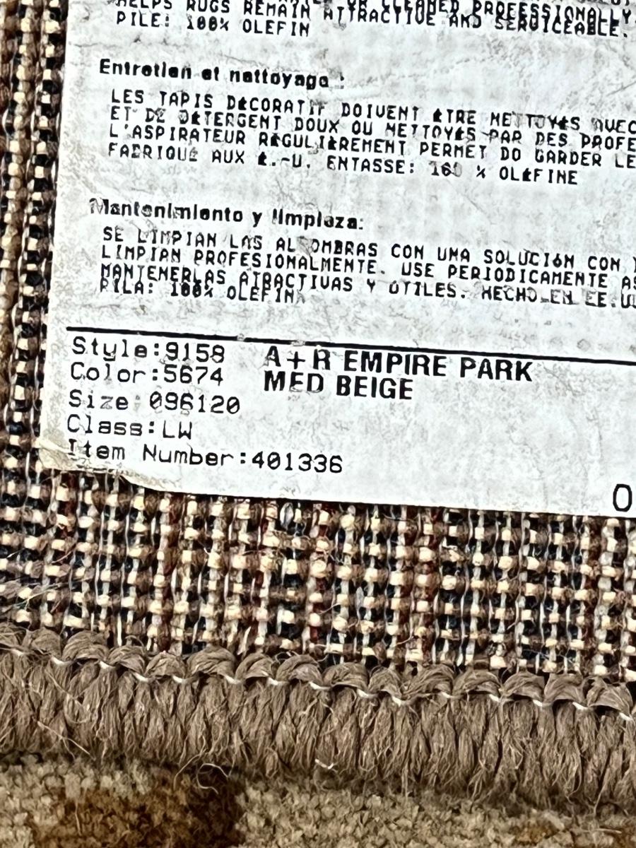 MOHAWK HOME ~ Med Beige Area Rug ~ 120” x 96”