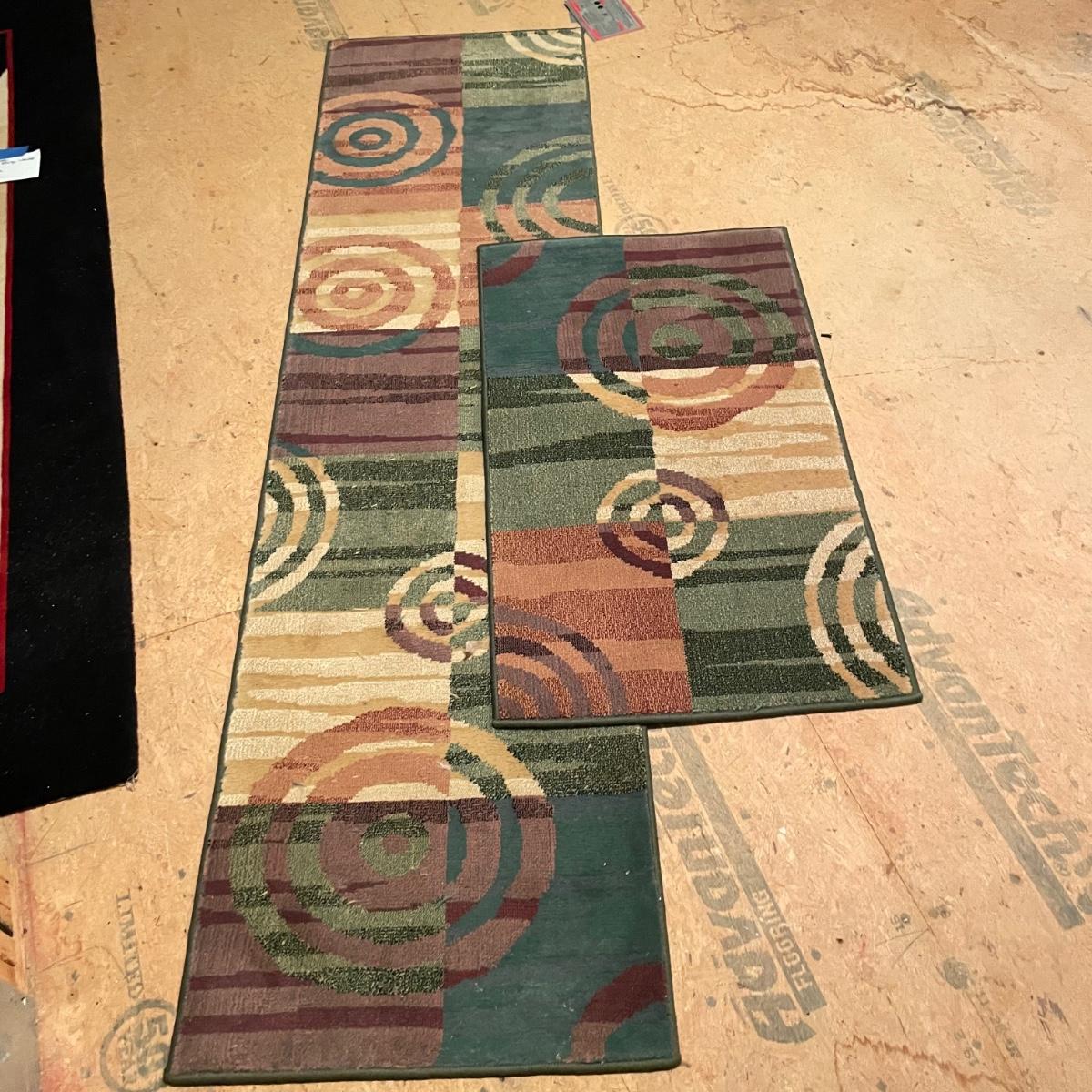 Lot includes a Mohawk brand runner rug that measures 25” x 93” and a smaller rug measuring 25” x 44”.