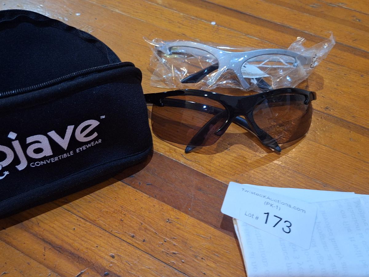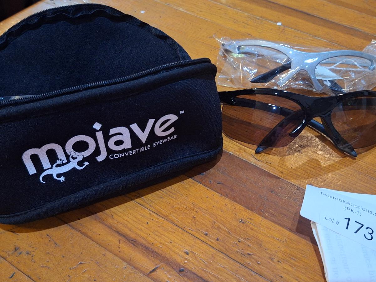 Mojave Convertible Eyewear safety glasses with a carrying case and an additional clear frame- extra lenses in the container.
