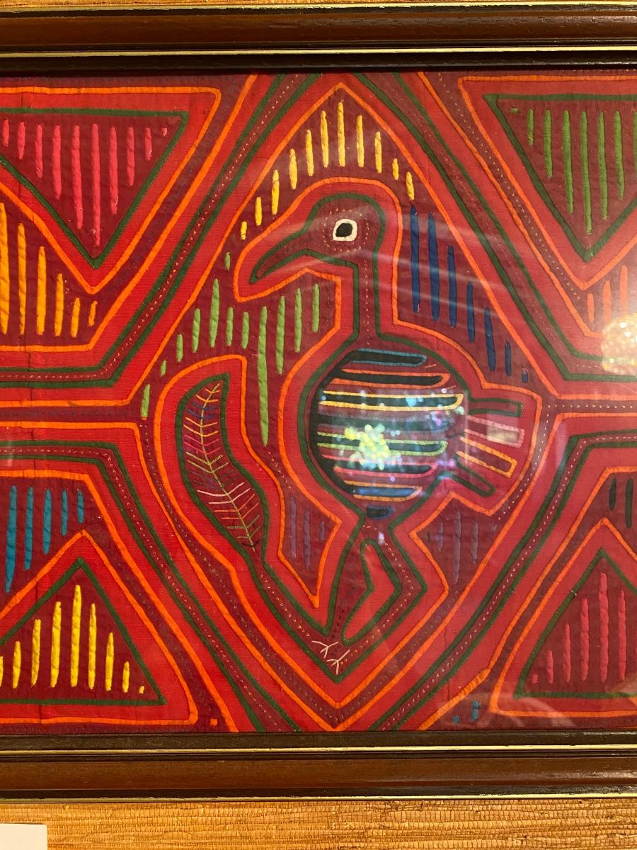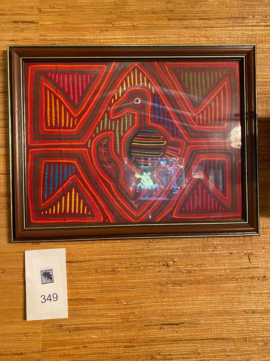 Framed Mola Art. Applique textile, hand stitched. 18" x 14"
